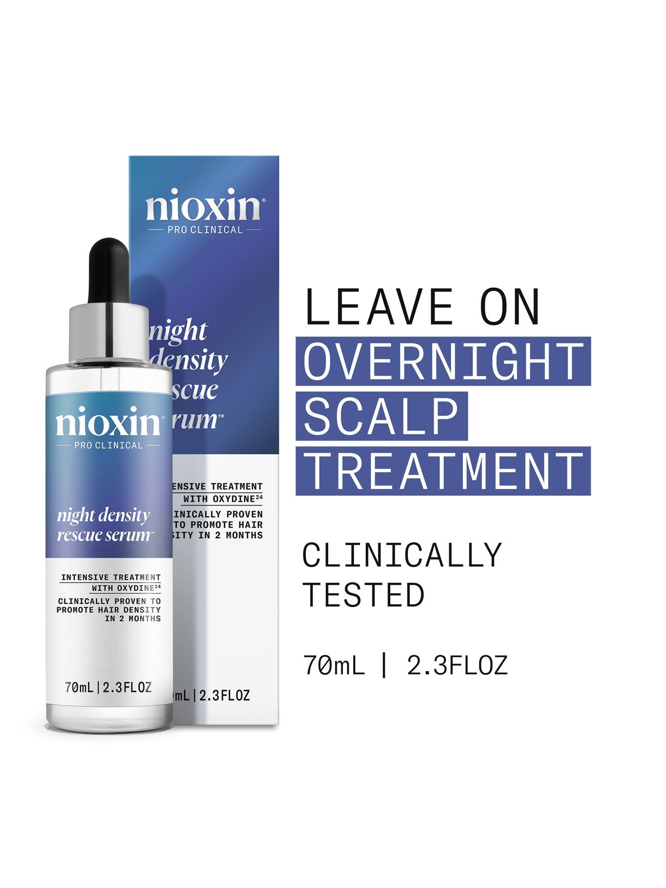 Nioxin Night Density Rescue Serum, Thickening Serum for Optimised Hair Growth, 70mlNioxin Night Density Rescue Serum provides a potent, ultra-lightweight formula to visibly volumise your roots and encourage the appearance of thicker and stronger-looking hair.The overnight treatment serum works whilst you sleep to help protect and nourish hair thanks to a blend of ginger, lauric acid and caffeine. The potent leave-in formula is rich in antioxidants, working from root to tip to help create a fuller appearance.
