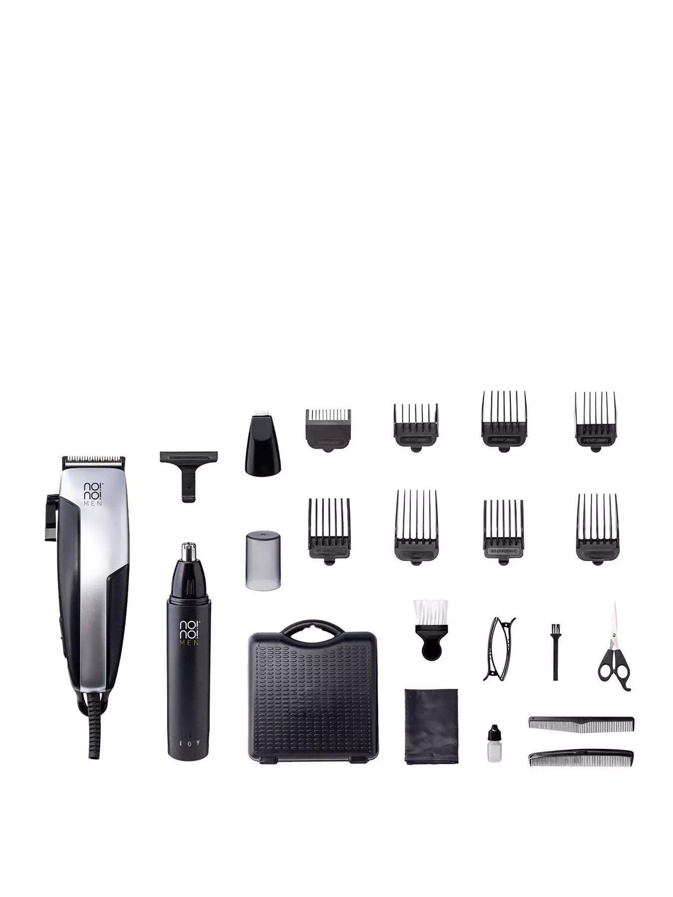 The No! No! Hair Clipper Grooming Kit Plus is the ideal 20 piece Hair cutting and grooming kit for home use. The Mains hair clipper can handle any hair type and comes with 8 guard combs from 3 - 22mm to create all ofthe latest styles and trims. The kit includes everything you need to be an at home barber!- Accessory List: Use on your face, hair and beard