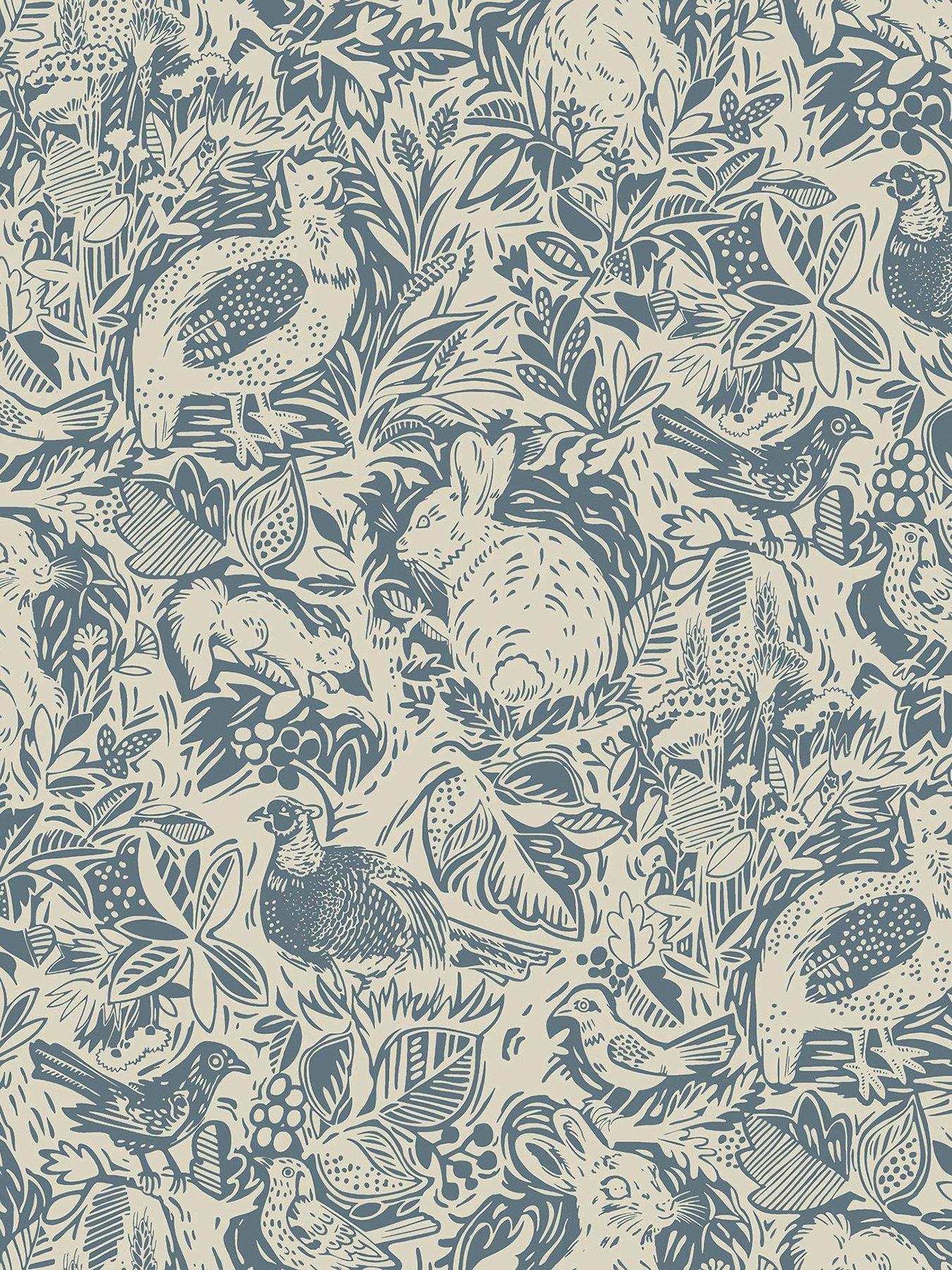 Nuwallpaper Self Adhesive Terrene - BlueThis illustrative woodland design is the perfect way to introduce a touch of country chic to your home. Rabbits, birds and squirrels pop out of the underbrush to greet you, inked in a classic blue for an extra layer of homey charm. Blue Terrene Peel and Stick Wallpaper comes on one roll that measures 52cm wide by 5.48m long. Peel & stick wallpaper featuring blue illustrative woodland print. Peel and stick to apply, pull up to remove. NuWallpaper is safe for walls and leaves no sticky residue behind. Easily repositionable while installing. NuWallpaper sticks to any smooth, flat surface - perfect for DIY projects. Ideal for rental or home decorating.Comes on a 52cm x 5.48m roll and covers about 2.86 square metres.Design repeat of 52cm.This product should NOT be applied to textured walls - smooth clean, dry, painted surface only (no Non-Stick paint or soap residue).