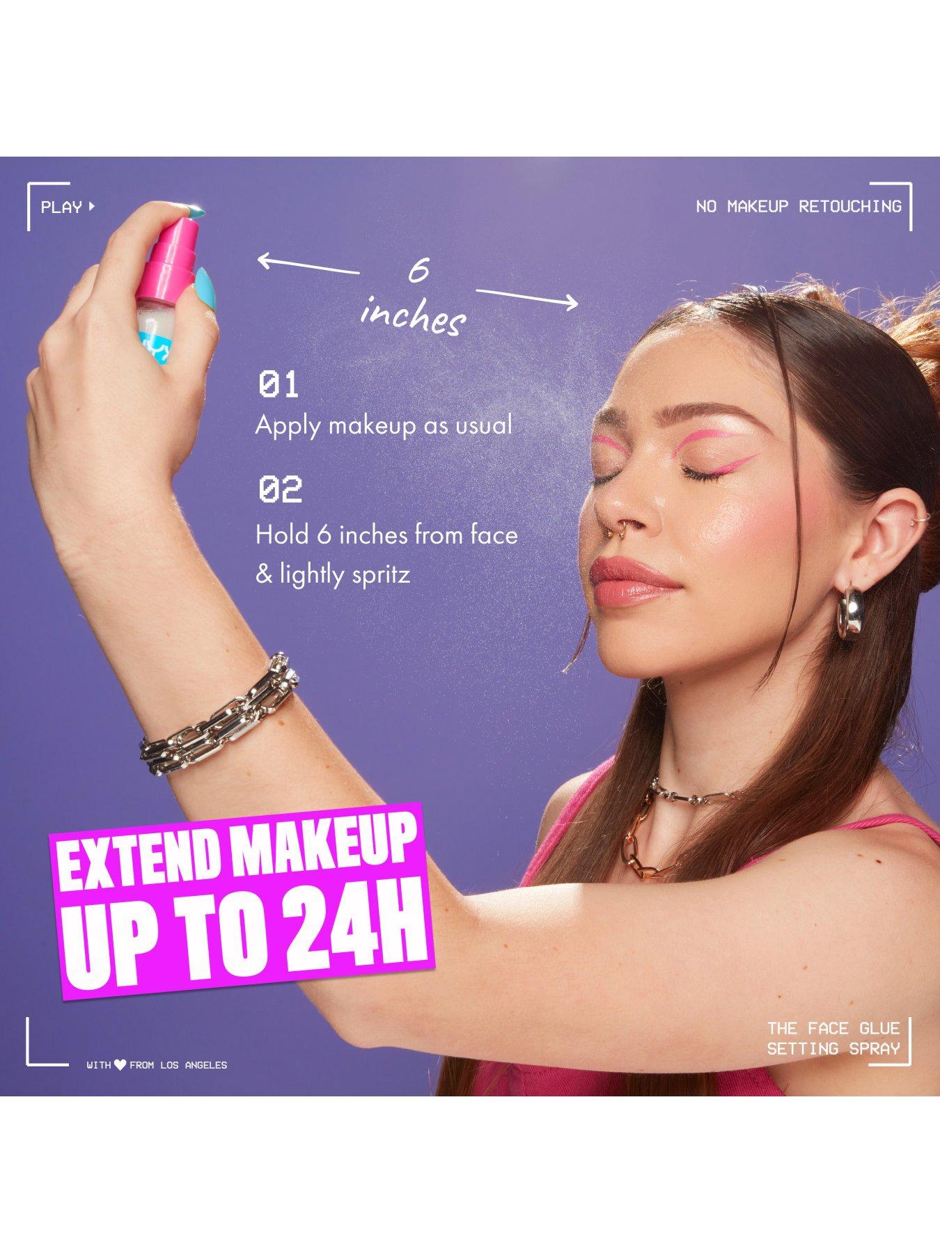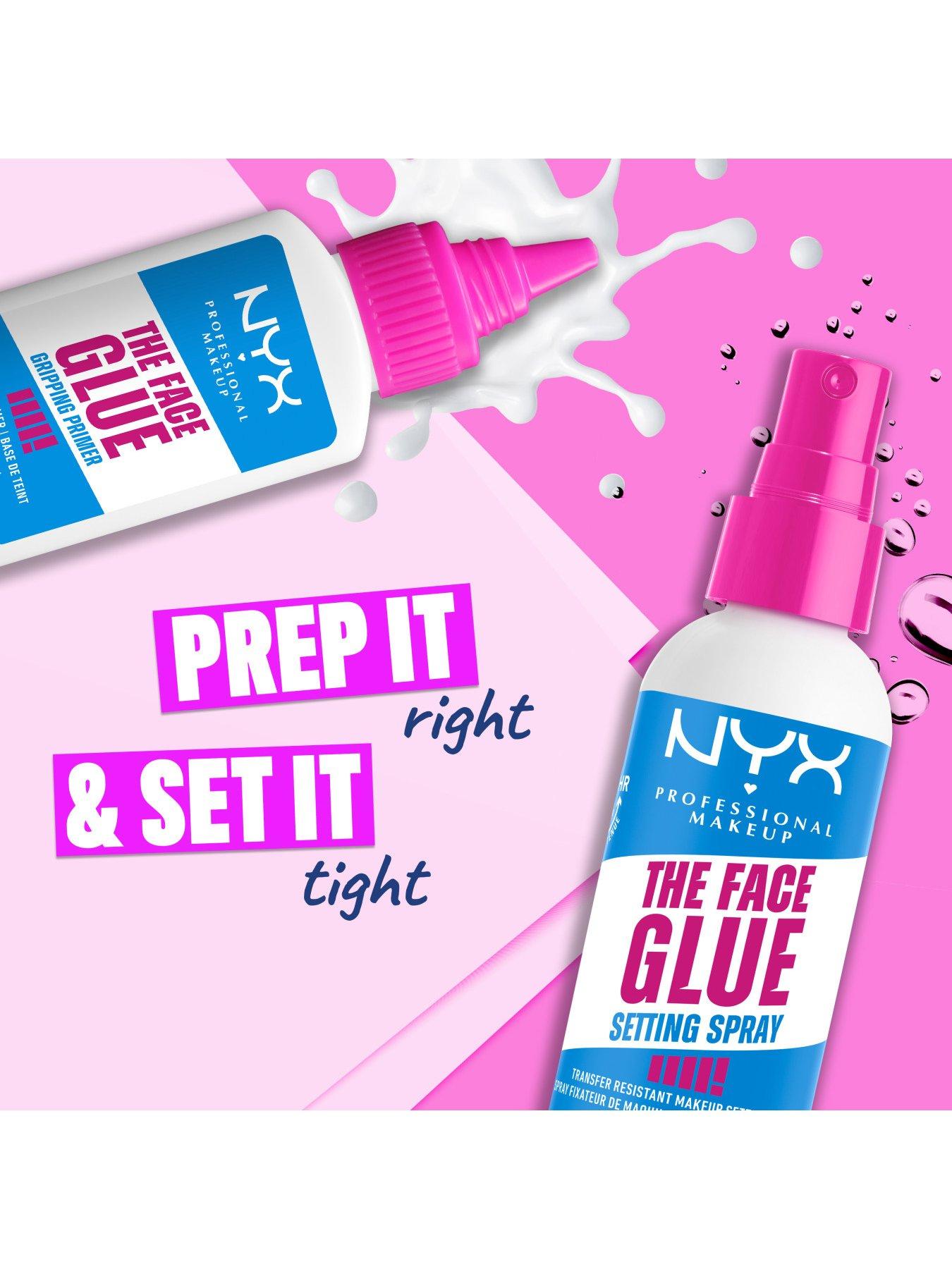 NYX Professional Makeup The Face Glue Setting SprayWith The Face Glue Setting Spray, this glue will get you stuck for up to 24 hours of wear. GLUES SO HARD! It's fade & transfer resistant. GLUES SO LONG! Wears up to 24 hour. GLUES SO GOOD! Boosts color vibrancy upon application! it's giving GLUE, baby! This transfer resistant, waterproof setting spray gives all the grip with none of the stickiness. We added film formers and Maple Syrup, which are known for their gripping properties. It's not just grip, it's giving GLUE!