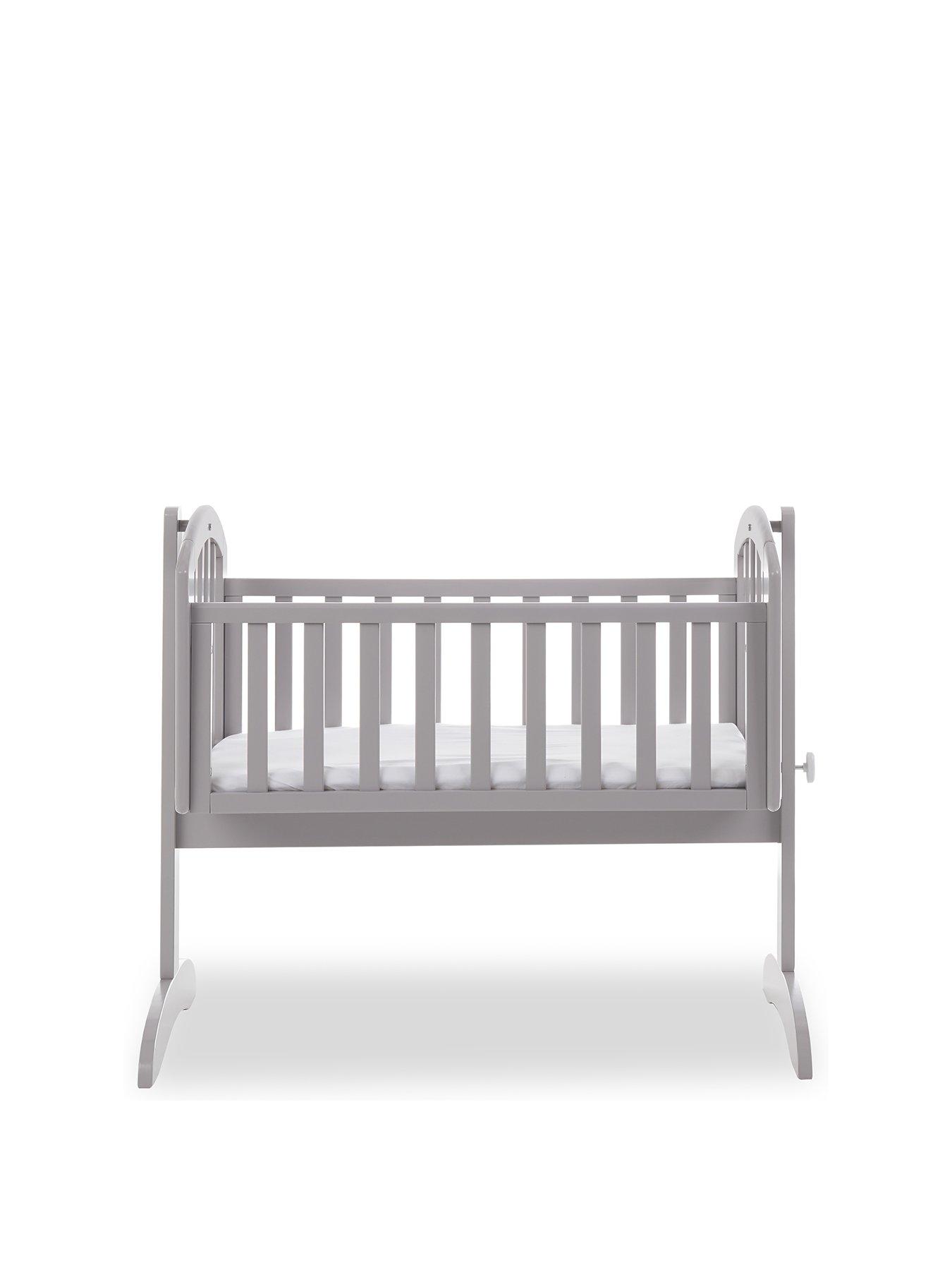 Obaby Sophie Swinging Crib & Mattress - Warm GreyObaby's Sophie swinging crib brings the sweetest of dreams to your little one, providing parents with the perfect environment for babies to stay snug and sleep soundly from birth up to approximately six months.Featuring a gentle rocking motion, the Sophie carefully swings your child into slumber, soothing and calming them as they fall. Further to this, the crib can then be placed easily into a locked static position so your little one's bedtime is not disturbed. The crib strikes a great balance between classic and contemporary, with open slatted ends and sides so parents can watch over their little one while they sleep. The Included Obaby 85 x 43cm foam crib mattress has a depth of 3.5cm and is fully breathable and features dent resistant vented foam and hypoallergenic properties to provide tots with a sublimely comfortable night's sleep. Also featuring a fully removable cover which is washable at 60°C, so that the piece can be kept fresh and clean for your child's slumber. All Obaby mattresses are designed and manufactured to comply with the General Product Safety Regulations 2005 and UK Furniture and Furnishings (Fire Safety) Regulations 1988/1989, 1993 and 2010. Crib, cot and cot bed mattresses are tested to BS 7177:2008+A1:2011 and BS EN16890:2017.