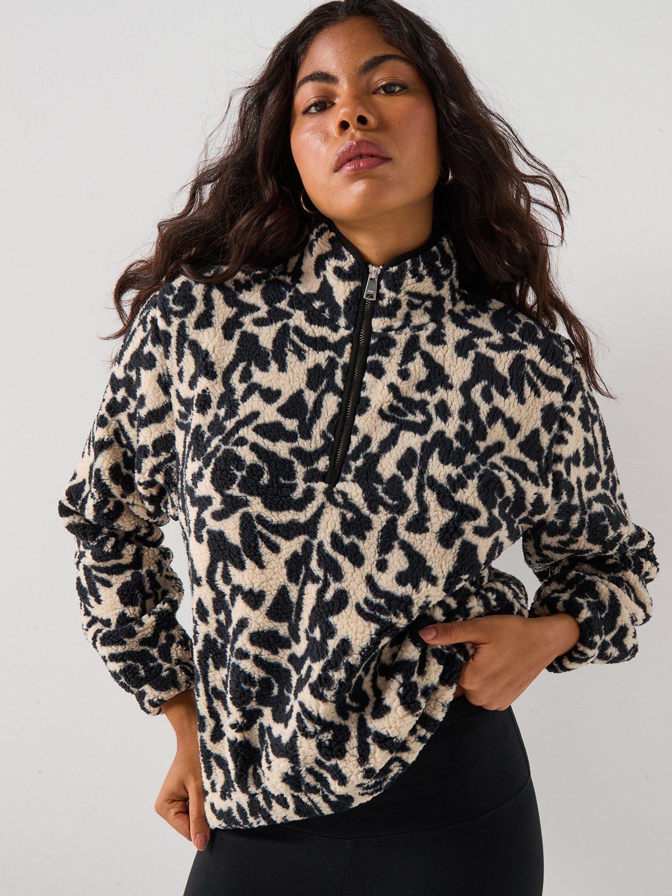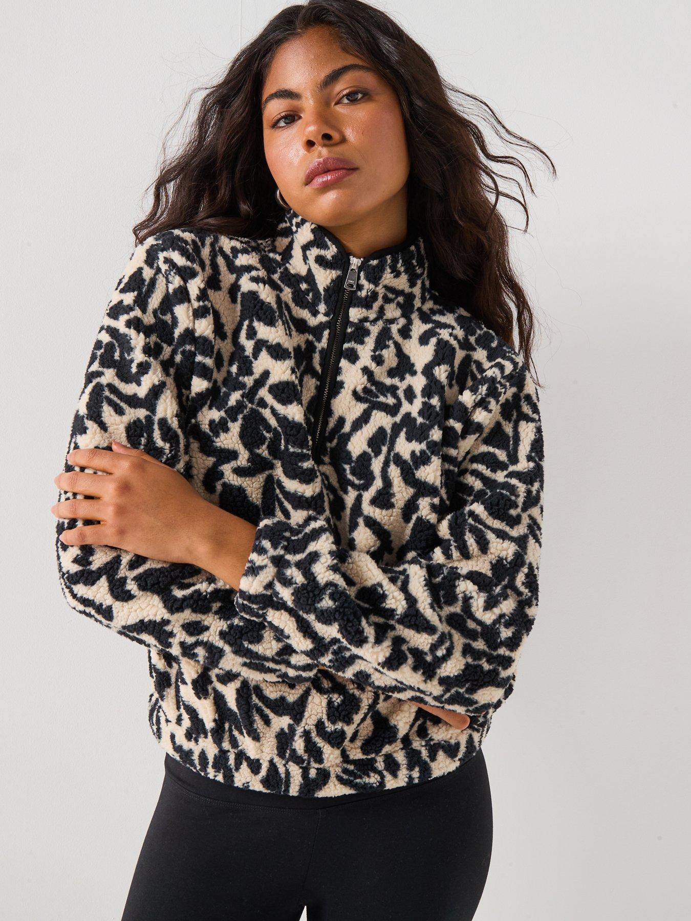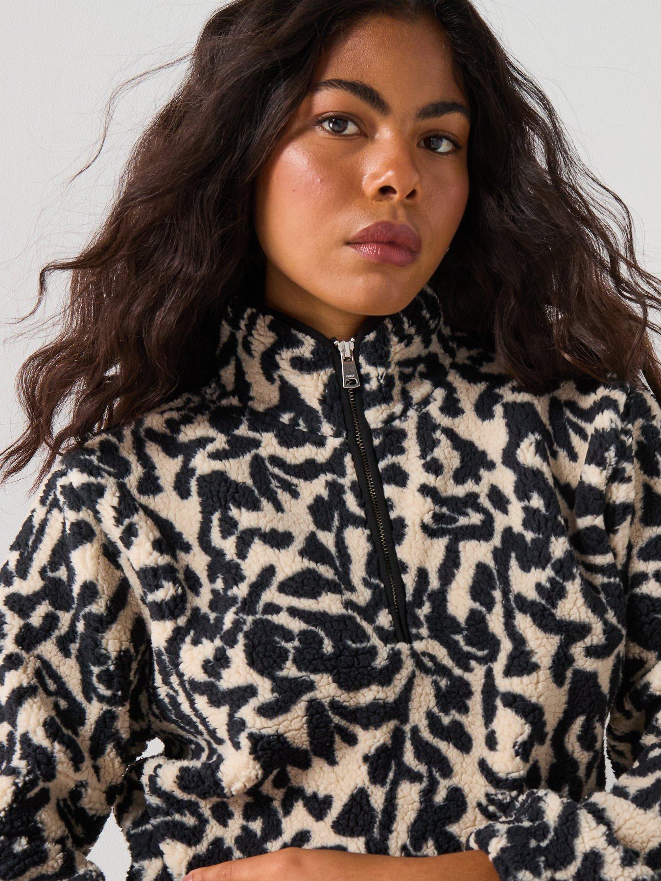 • Animal Print Quarter Zip Fleece Top by Only