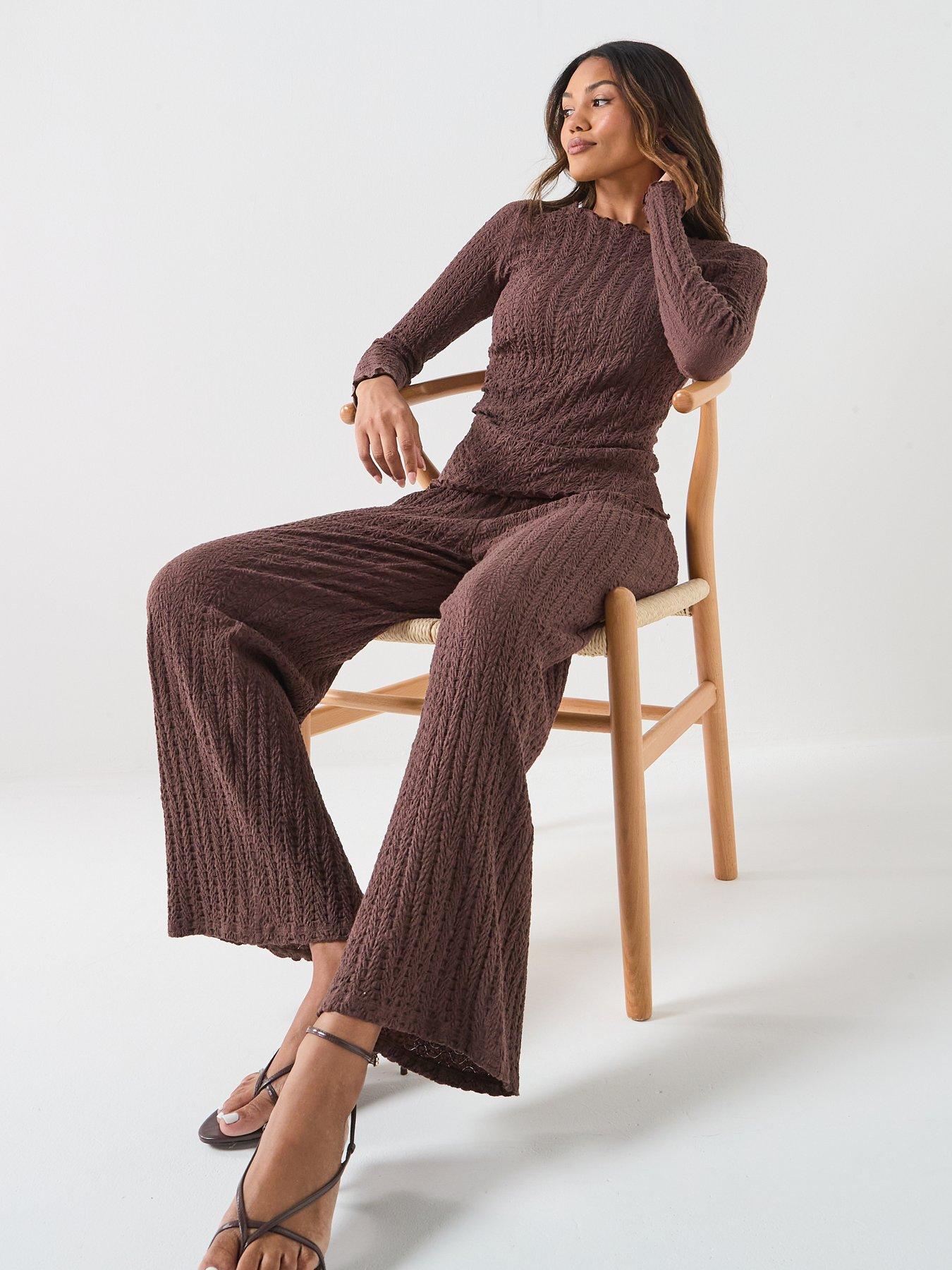 Only Ella Wide Leg Textured TrousersSize & Fit