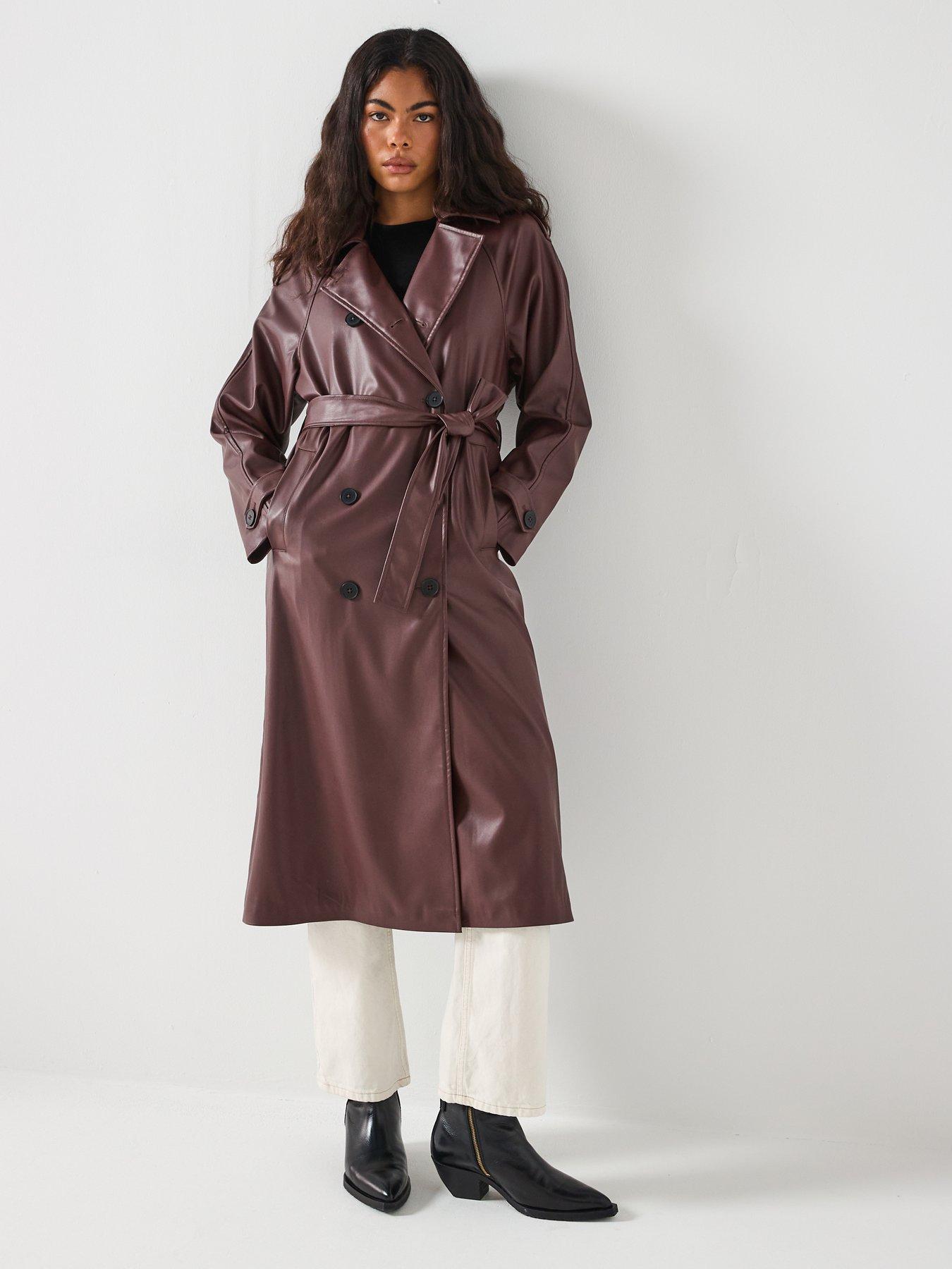 • Flora Faux Leather Trench Coat by Only