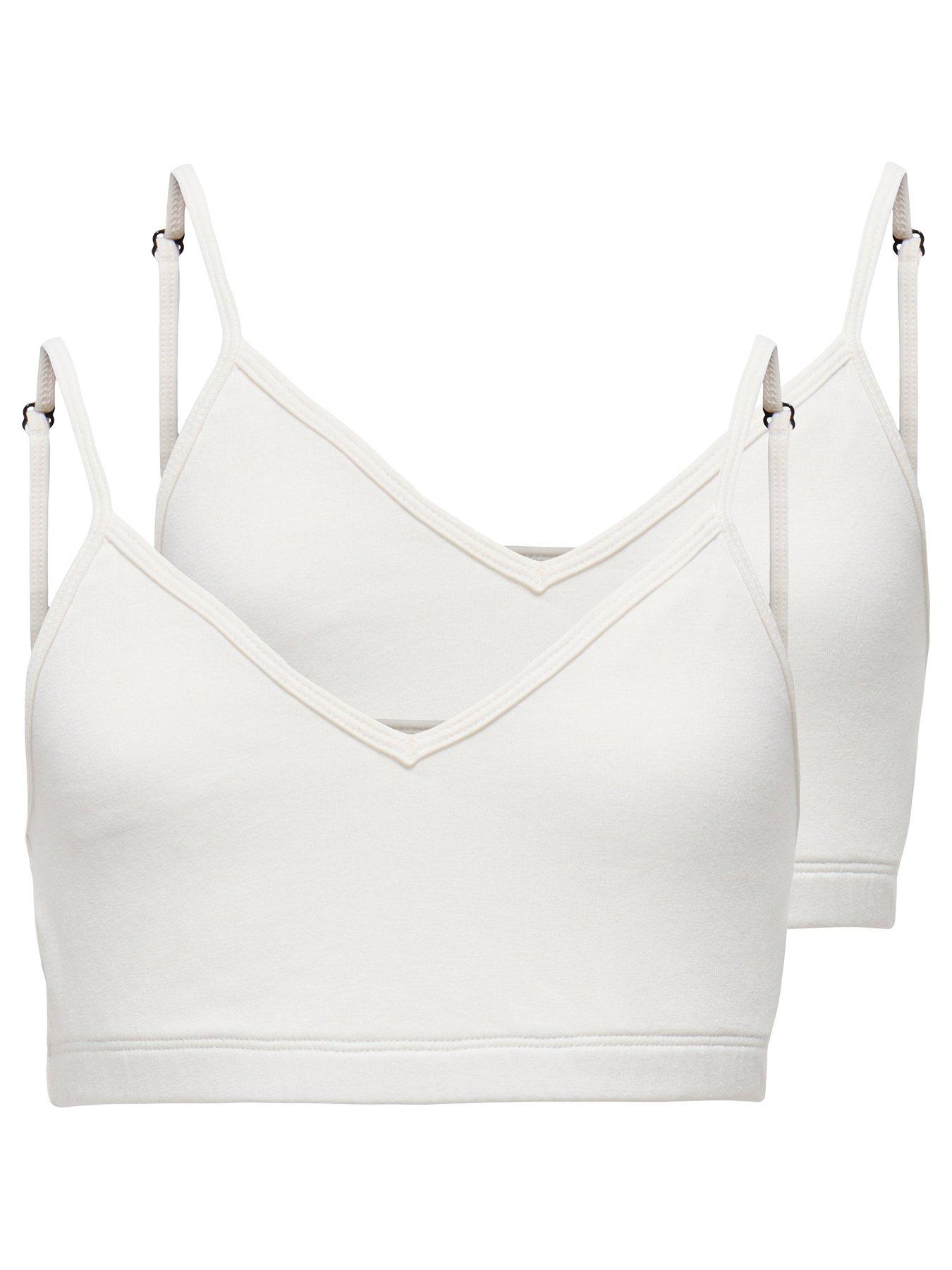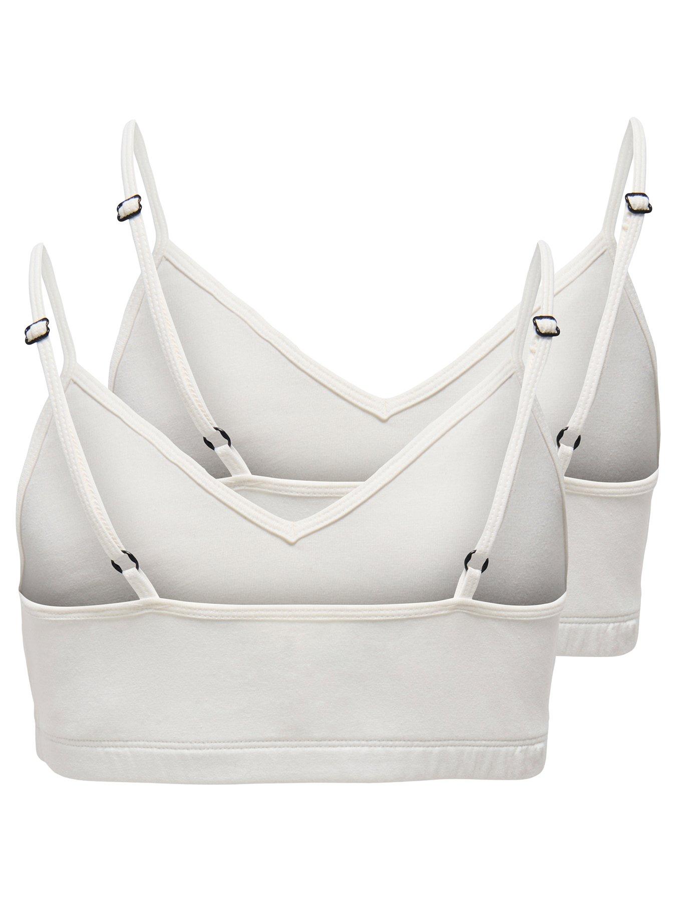 Only Kids Girls 2 Pack Bralettes - WhiteOur underwear from ONLY GIRLS is both soft and comfortable - designed to provide freedom and comfort all day long no matter what the day brings.ONLY GIRLS is for girls who love to express their style with confidence. The collections offer the perfect blend of trendy denim, feminine details, and rock ‘n' roll-inspired styles. Our clothing is designed to give young fashion lovers the chance to stand out with both everyday looks and festive outfits.