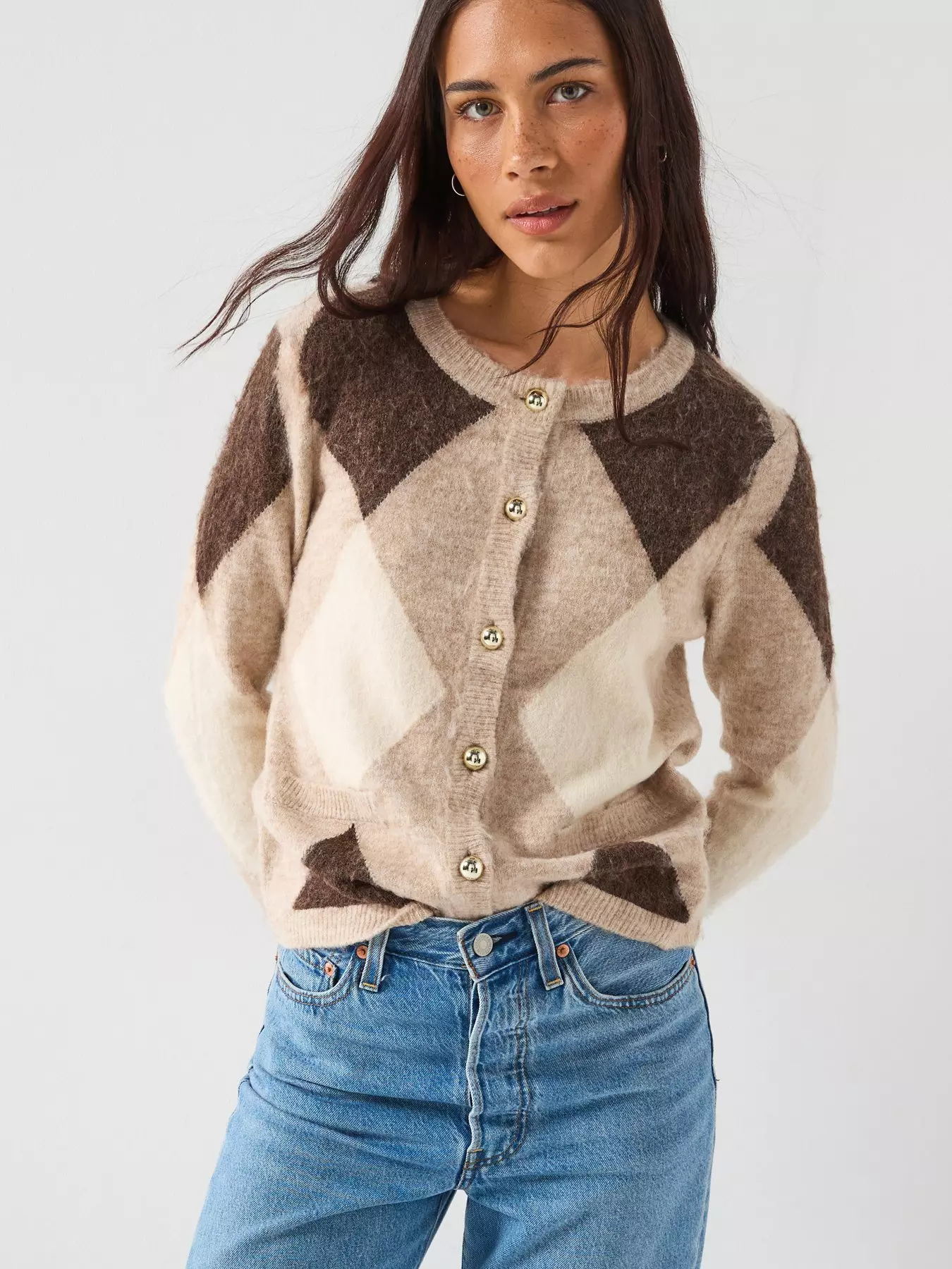 OnlyLong Sleeve Gold Button Cardigan - Beige