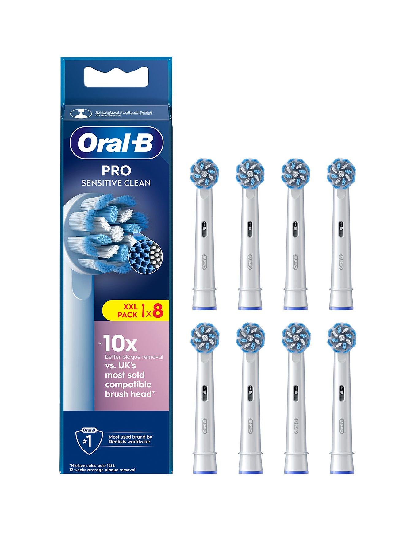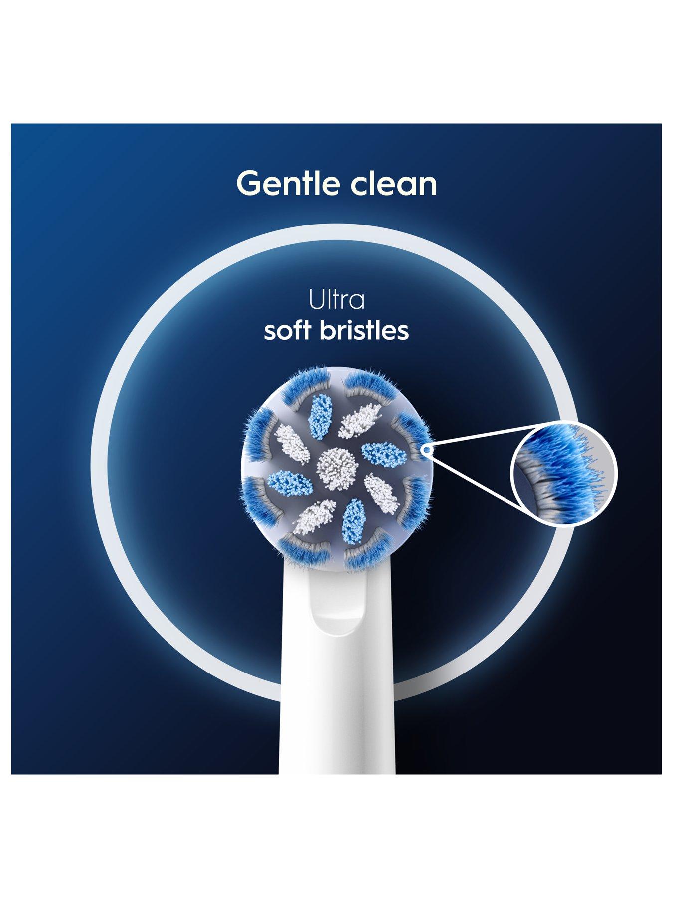 The Oral-B Pro Sensitive Clean features extra soft bristles that are gentle on gums, combined with regular bristles that are tough on plaque. It removes up to 100% more plaque and reduces gum inflammation by 100% compared to a manual toothbrush. Oral-B genuine brush heads are designed with new X-shape bristles that clean in areas that round ones cannot reach. Guaranteed fit with Oral-B electric rechargeable toothbrushes except Pulsonic & iO toothbrushes