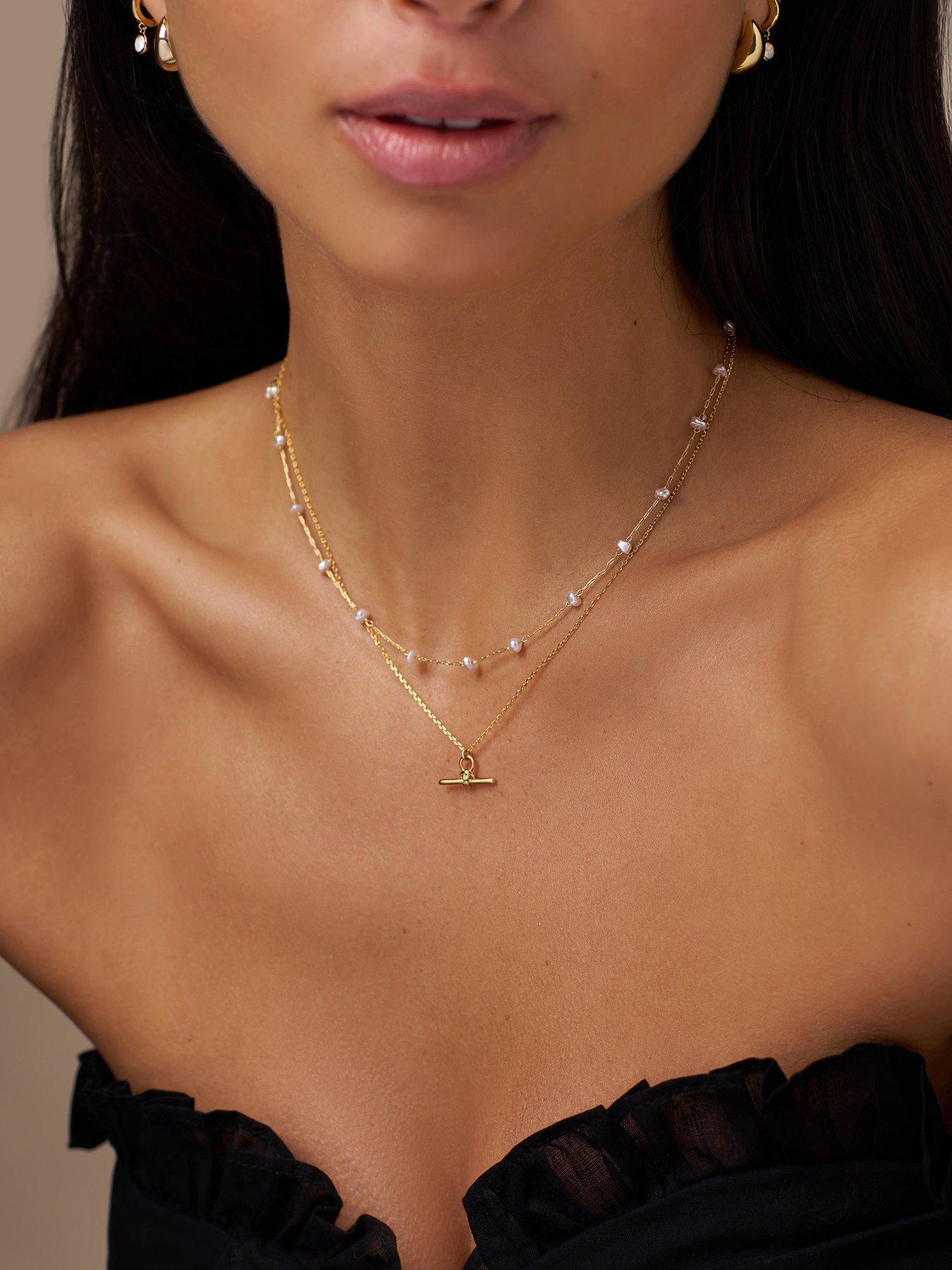 A dainty T-Bar Knot necklace from Orelia. This Jewelley is plated in 18k gold.