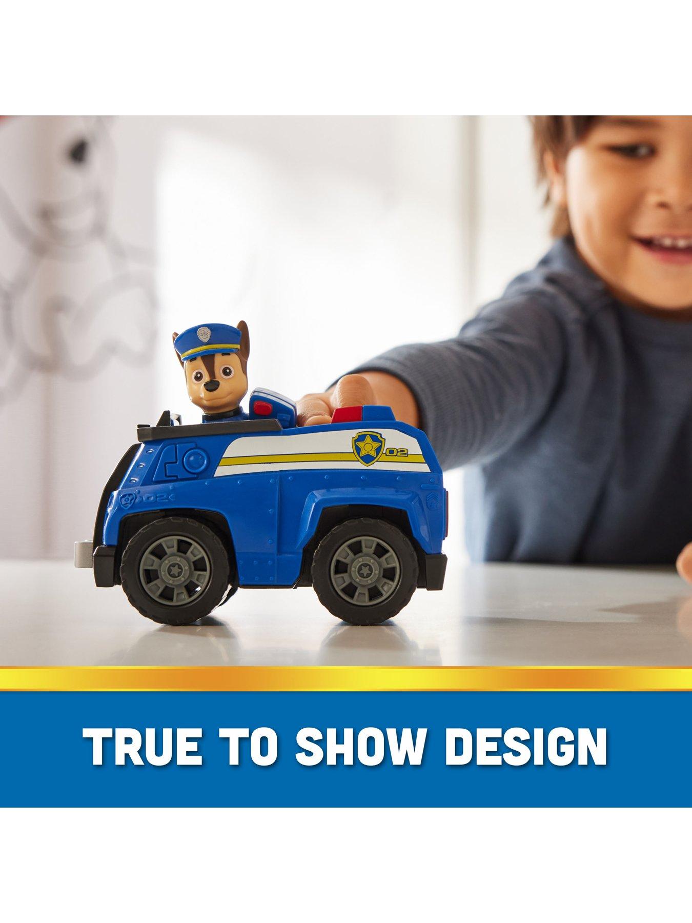 Paw Patrol Core Vehicle - ChaseThe PAW Patrol are on a roll in their rescue vehicles! Join Chase on action-packed missions with his Police Cruiser! When trouble strikes, place Chase (figure included) into the driver's seat and roll to the rescue with real working wheels! With authentic detailing and realistic features, the PAW Patrol's beloved police dog and his cruiser bring all the excitement of PAW Patrol to life. As your child plays with Chase and his Police Cruiser, your child's imagination will be lit up with rescue missions full of friendship, teamwork and bravery. Team up with the rest of the pups and their rescue vehicles (each sold separately) and help to save the day in Adventure Bay! Race to the ruff ruff rescue with Chase and his Patrol Cruiser!
