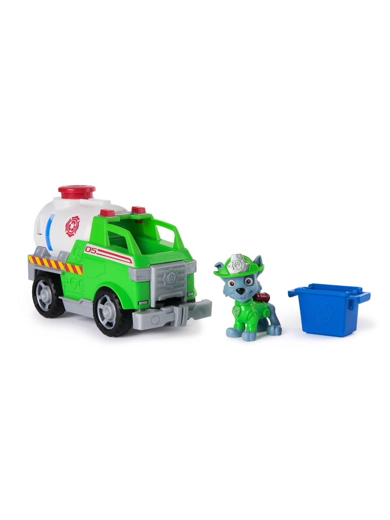 Paw Patrol FIRE RESCUE -PAW Rocky Themed VehicleStep into the world of PAW Patrol Fire Rescue with the Rocky Rescue Fire Tanker. This engaging toy truck is a must-have for young fans who love action figures and PAW Patrol vehicles. With Rocky standing over 5 cm tall, dressed in his fire rescue gear, kids can imagine thrilling missions and heroic rescues. The 20,3 cm toy truck features a built-in grab claw that slides out with a simple push of the red button, adding excitement to your pretend play. The bin hooks onto the back, making it PAWfect for transporting supplies, while the real working wheels ensure smooth movement during adventures. Genuine PAW Patrol styling makes this truck look just like it does on the show. These PAW Patrol learning toys are PAWsome for a birthday, Christmas, or any holiday. For even more fun, combine with the Fire Rescue Command Center, Rapid Reload Fire Truck and six different Fire Rescue figures and vehicles, so the excitement never ends. (each sold separately) Relive cherished moments from past PAW Patrol seasons, like the Mighty Pups and PAW Patrol Movie, or create new adventures with a PAW Patrol tower, individual PAW Patrol action figures and their PAW Patrol vehicles, for turbo-charged adventures.