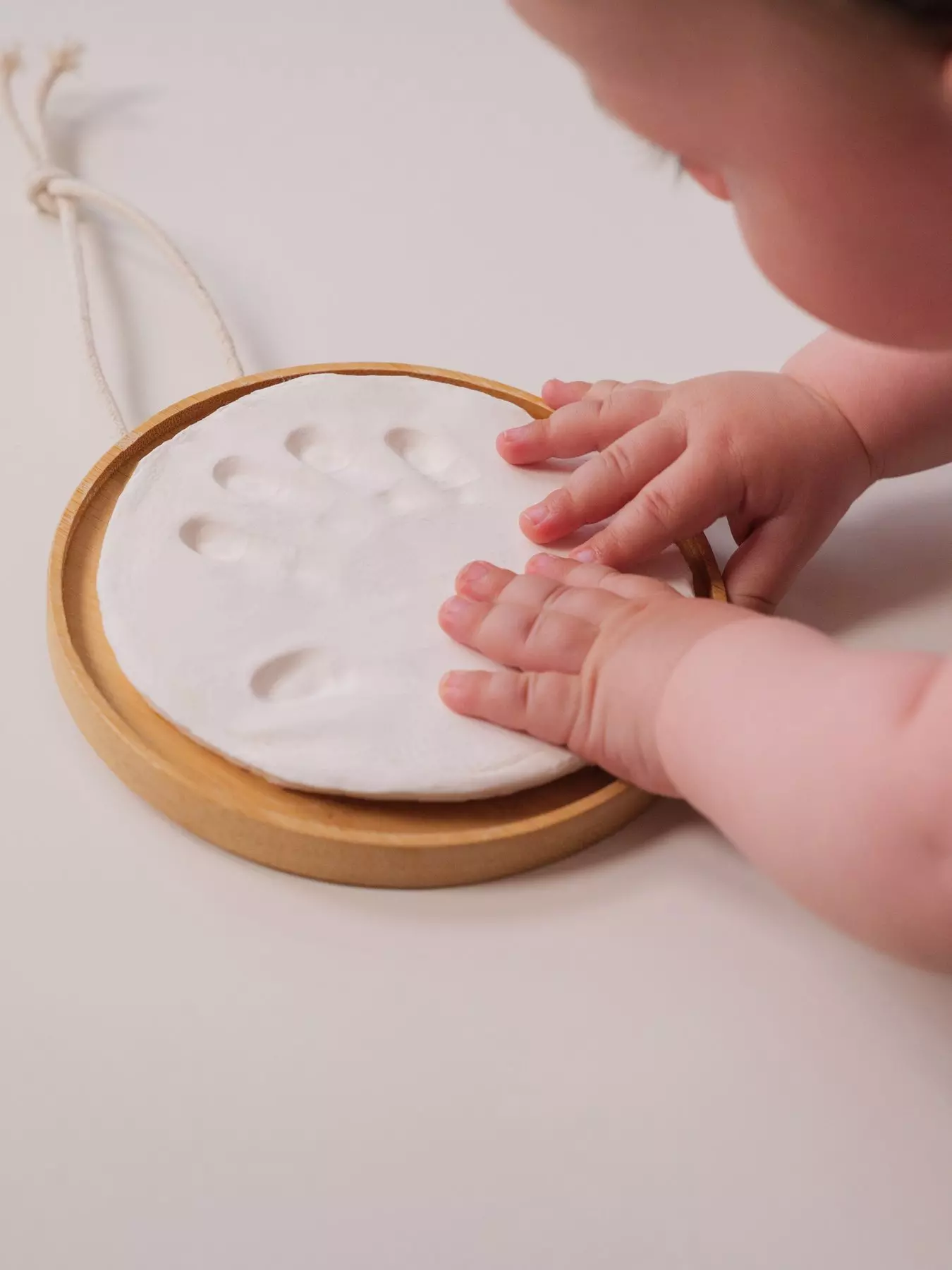 The Wooden Medallion keepsake offers a unique and elegant way to preserve your baby's hand or footprints. This complete kit includes hypoallergenic clay, a roller for application, a round wooden frame for decoration, a cord for hanging, and instructions to easily create the print. Easy to use, it creates a lasting memory that can be hung on the wall or suspended wherever you would like!- Depth: 15 CM