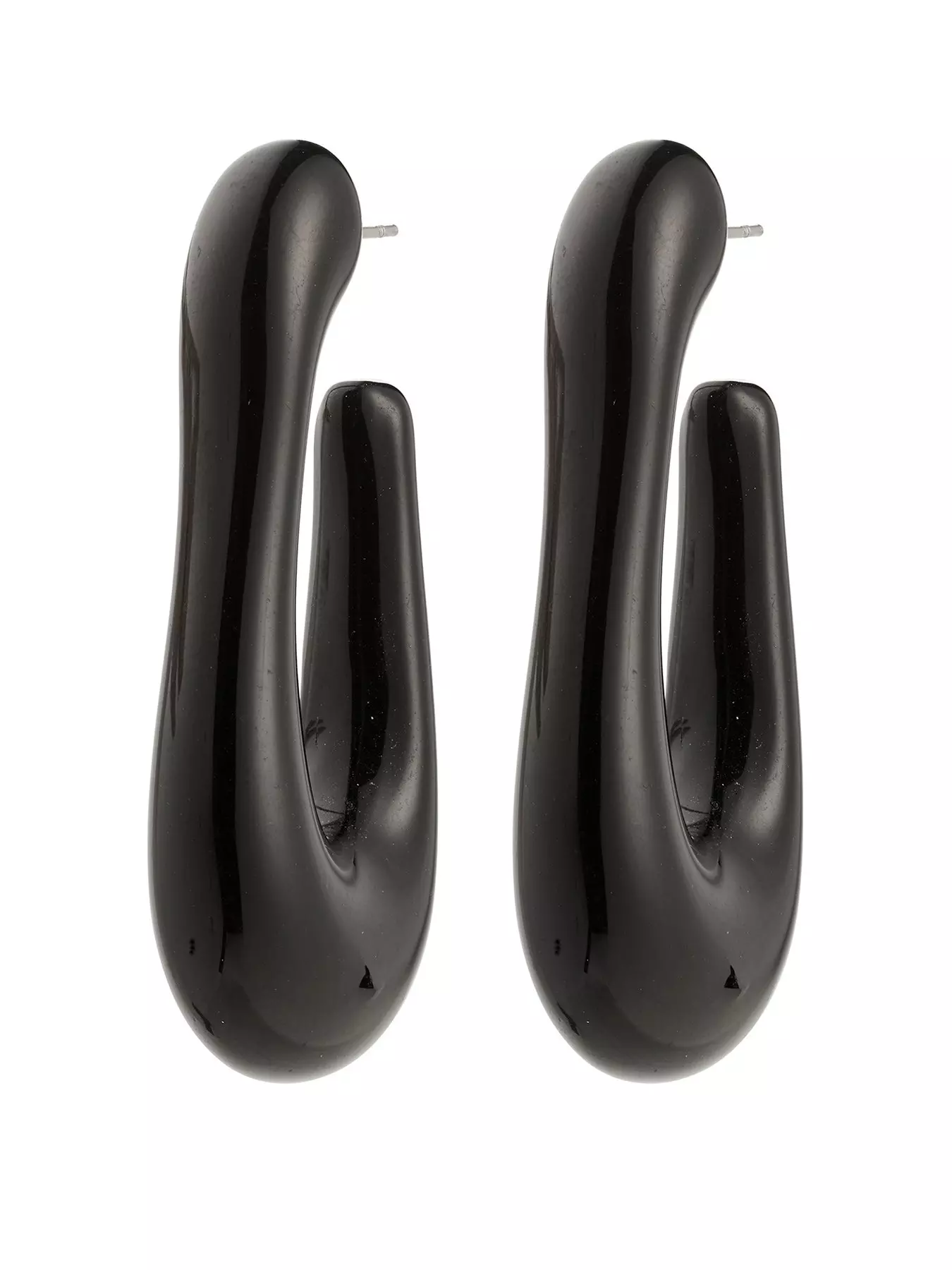- Go with all your heart! The large, oval ELIJAH hoops from Pilgrim, crafted in black acrylic, add an edgy retro touch to your favourite autumn-winter styles.