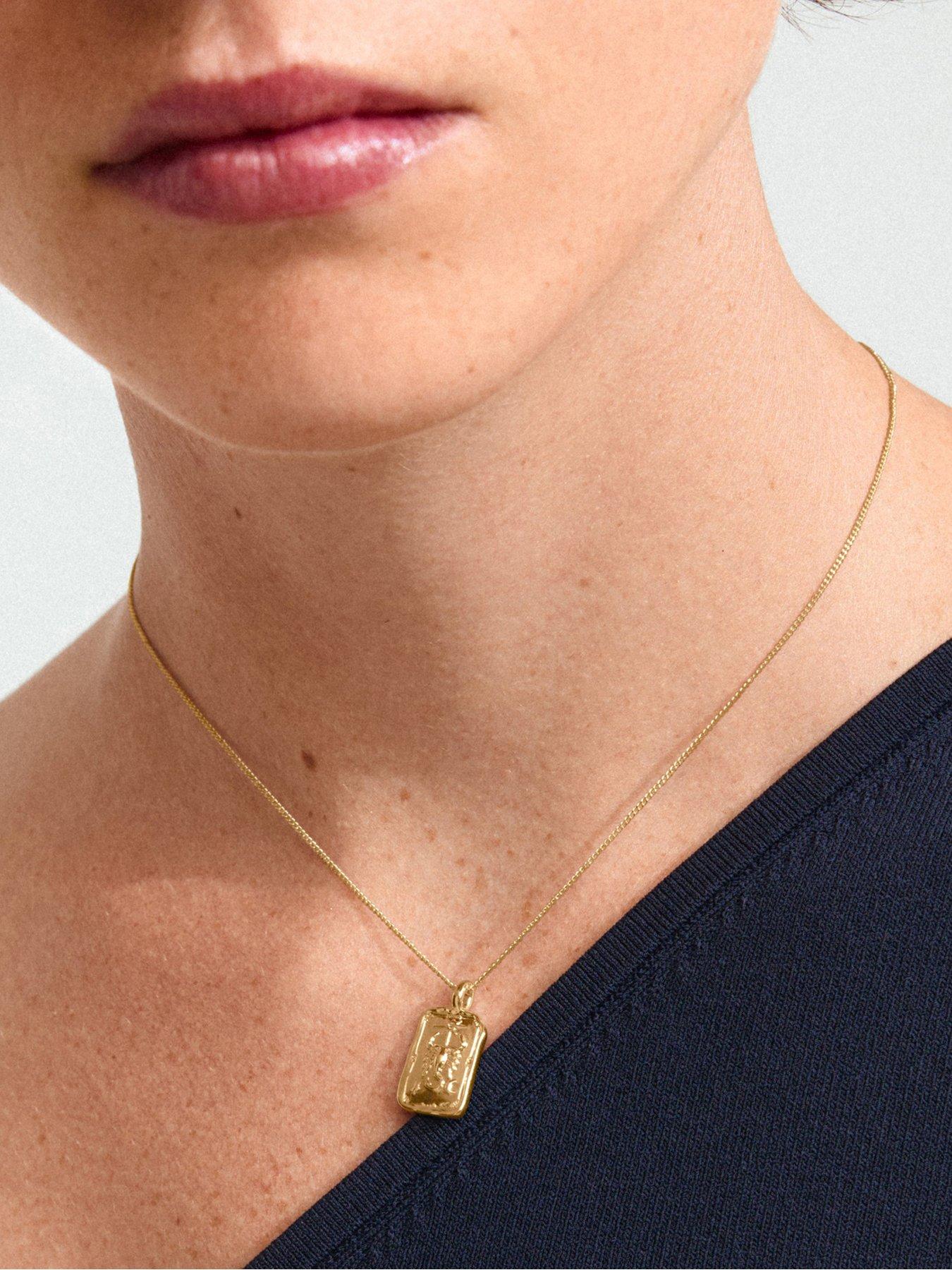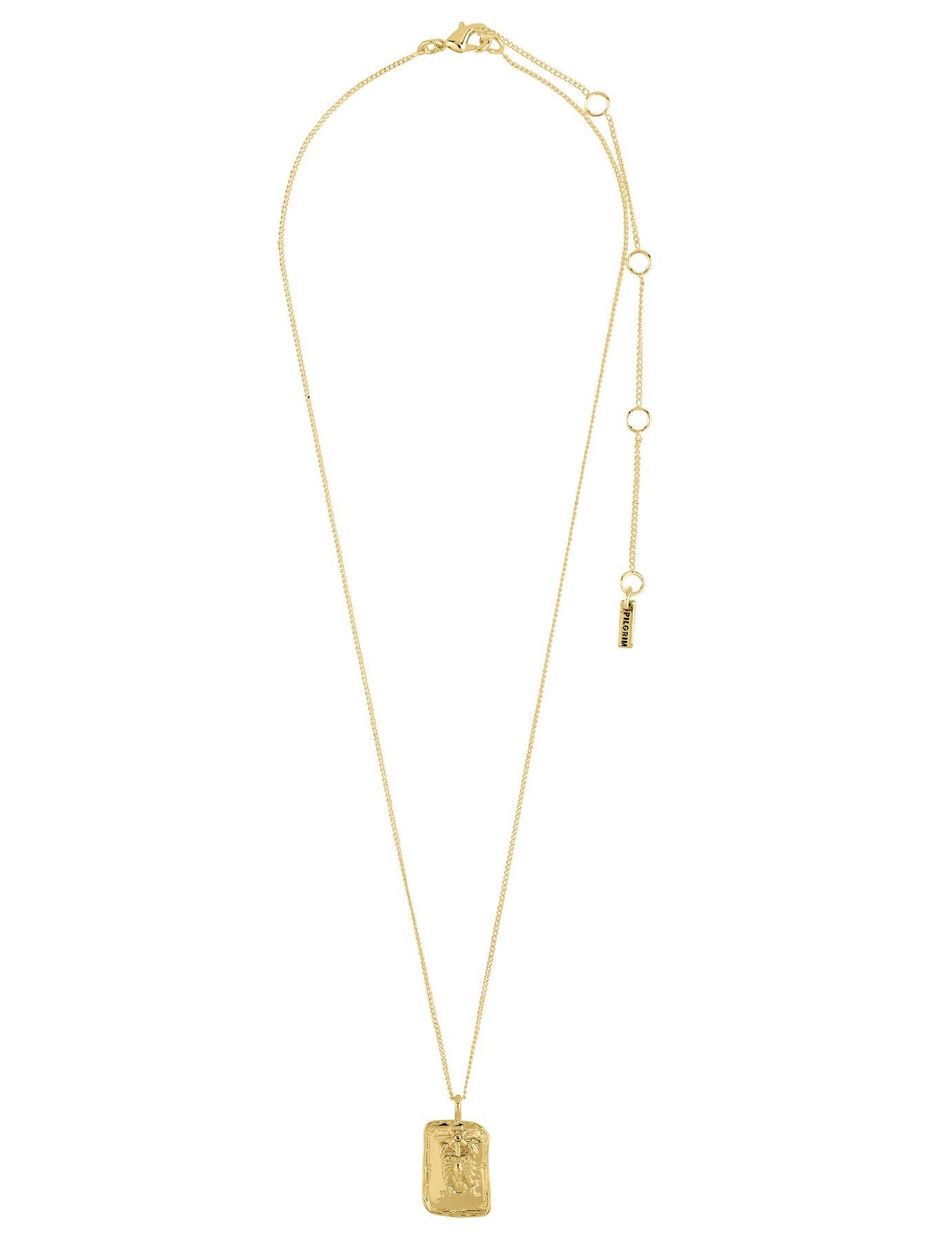 Pilgrim SCORPIO Zodiac Sign necklace, gold-platedThe STARS live within you! With the SCORPIO Zodiac Sign necklace from Pilgrim, you get a piece that is as unique as you are. A gold-plated chain with a square coin pendant in a dual design. Flip it for either a classic Scorpio zodiac motif or for your sparkling constellation with glittering Preciosa crystal stones - talk about cosmic coolness! The pendant has a rustic, handcrafted look that exudes an edgy, genderless look. A piece that is not only a personal statement, but also an ideal gift that carries a deeper meaning and connection to the stars. The necklace measures 40 cm + 12 cm extension chain.