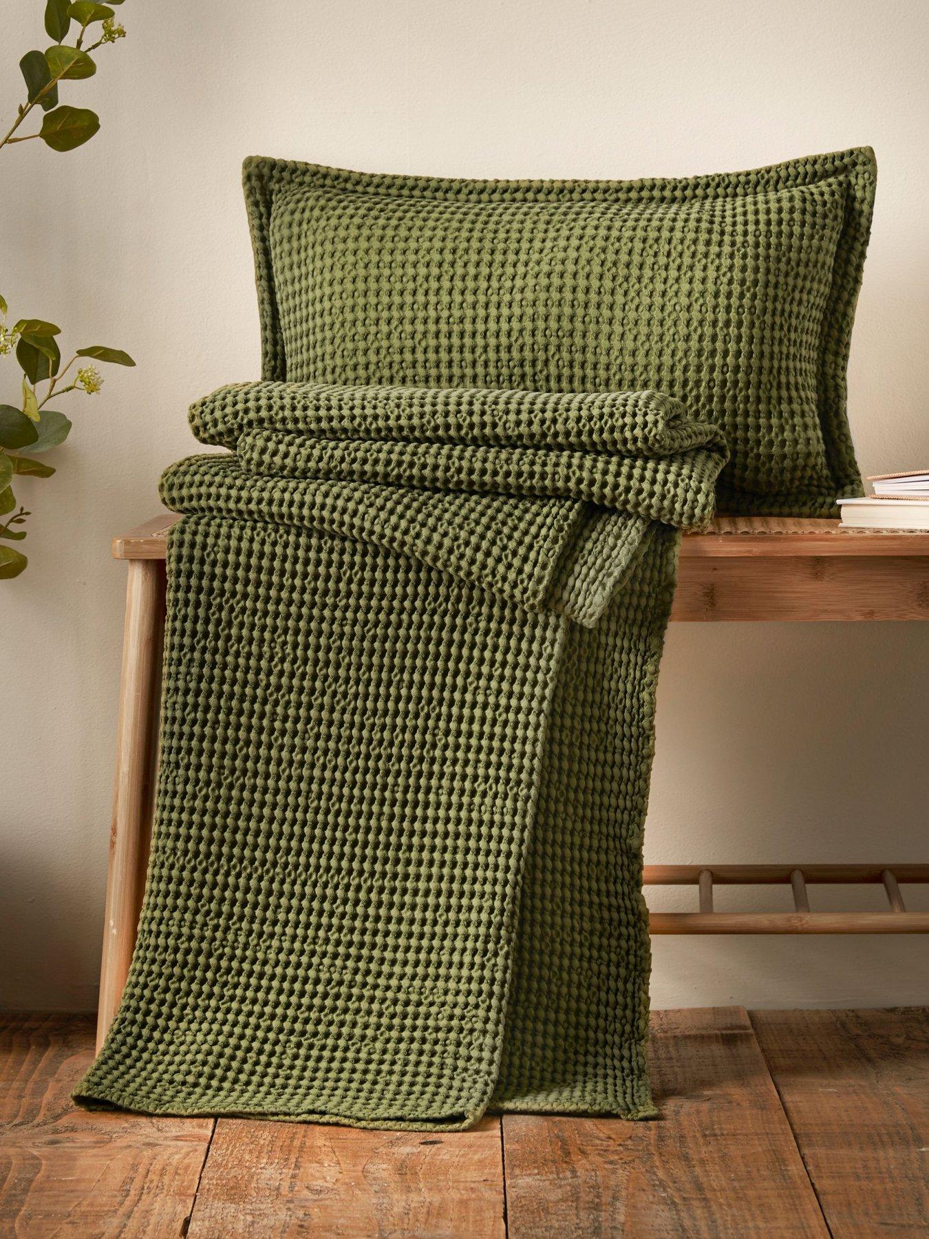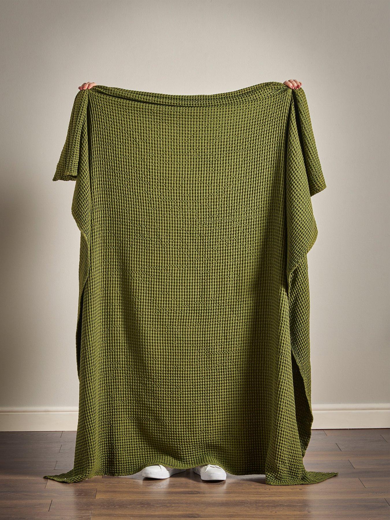 Perfect for layering, this blanket throw blends effortlessly into any home decor style. Designed in soothing tones to bring warmth and texture to your space. Crafted from soft, breathable cotton, the oversized waffle weave adds a rustic yet refined touch.