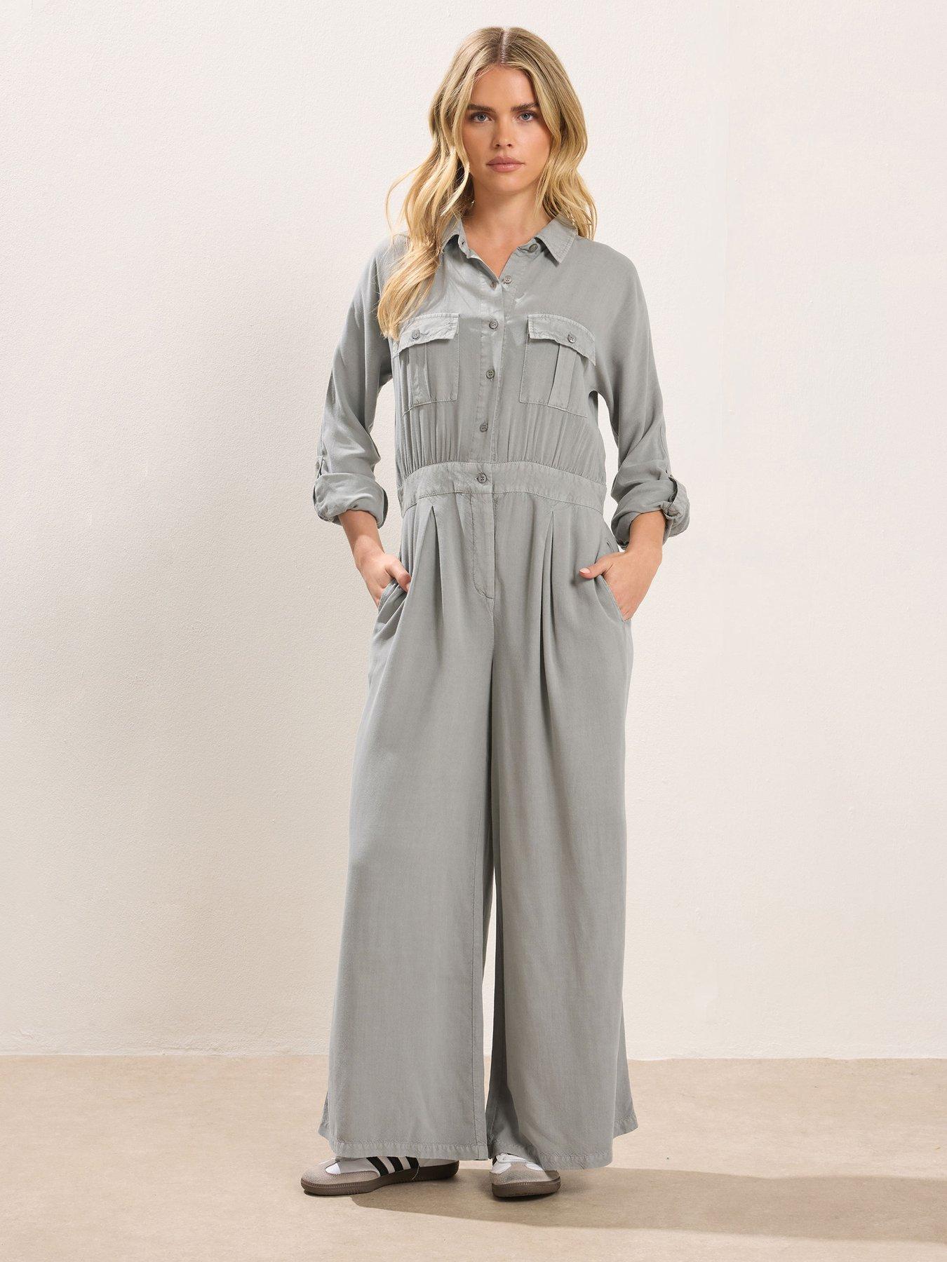 • Petite Acid Wash Wide Leg Jumpsuit by PixieGirl