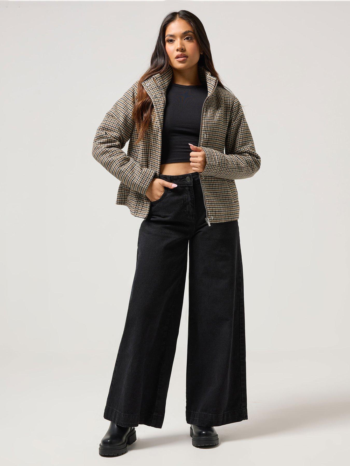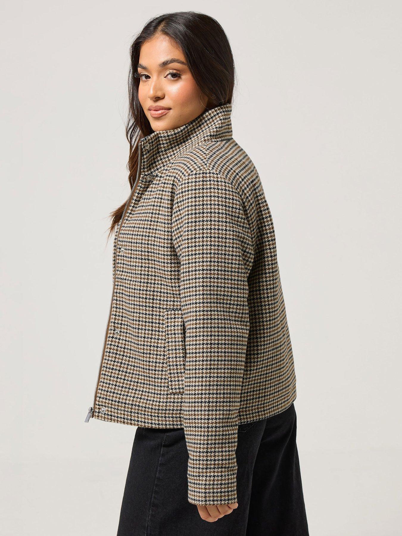 • Petite Check Funnel Neck Jacket by PixieGirl