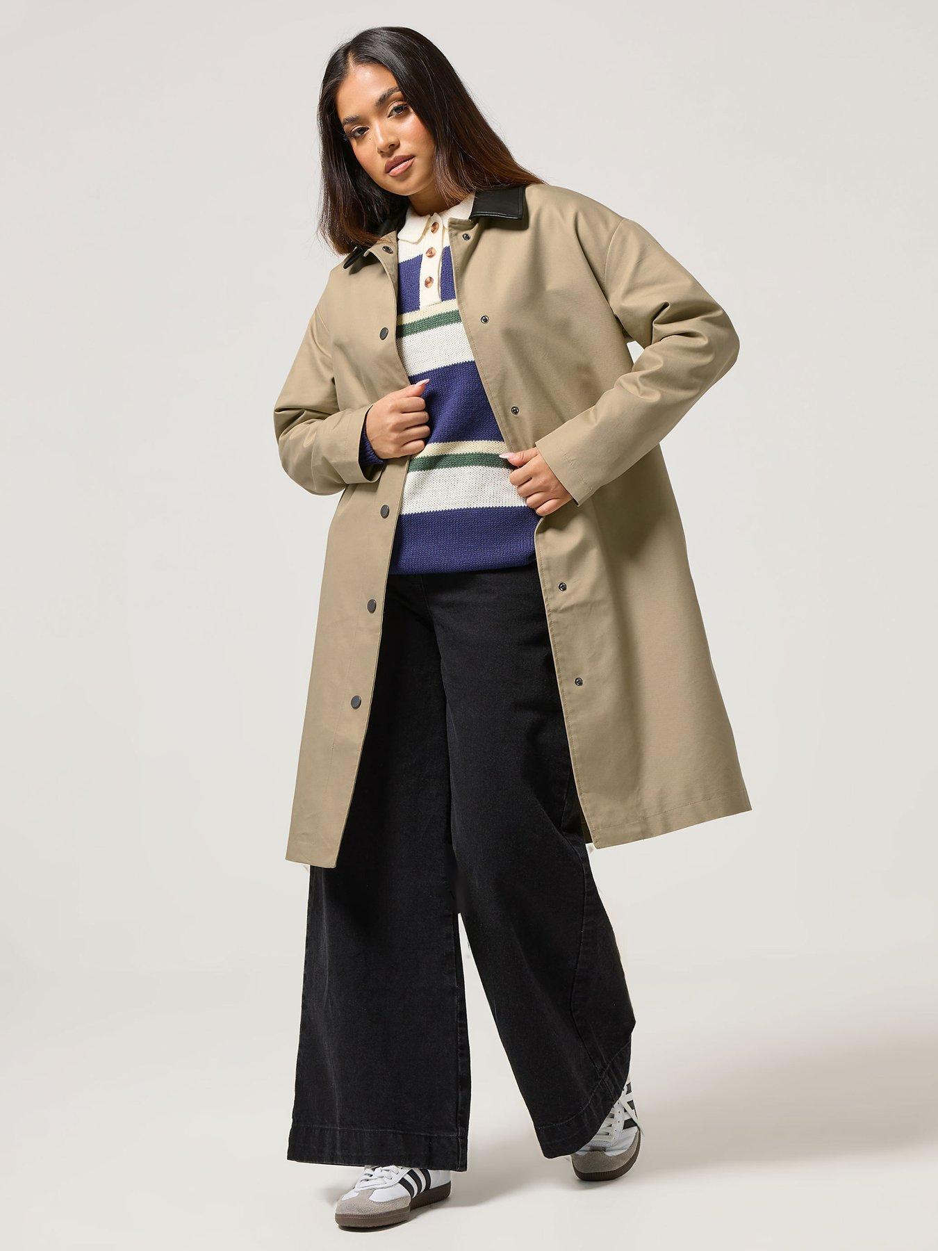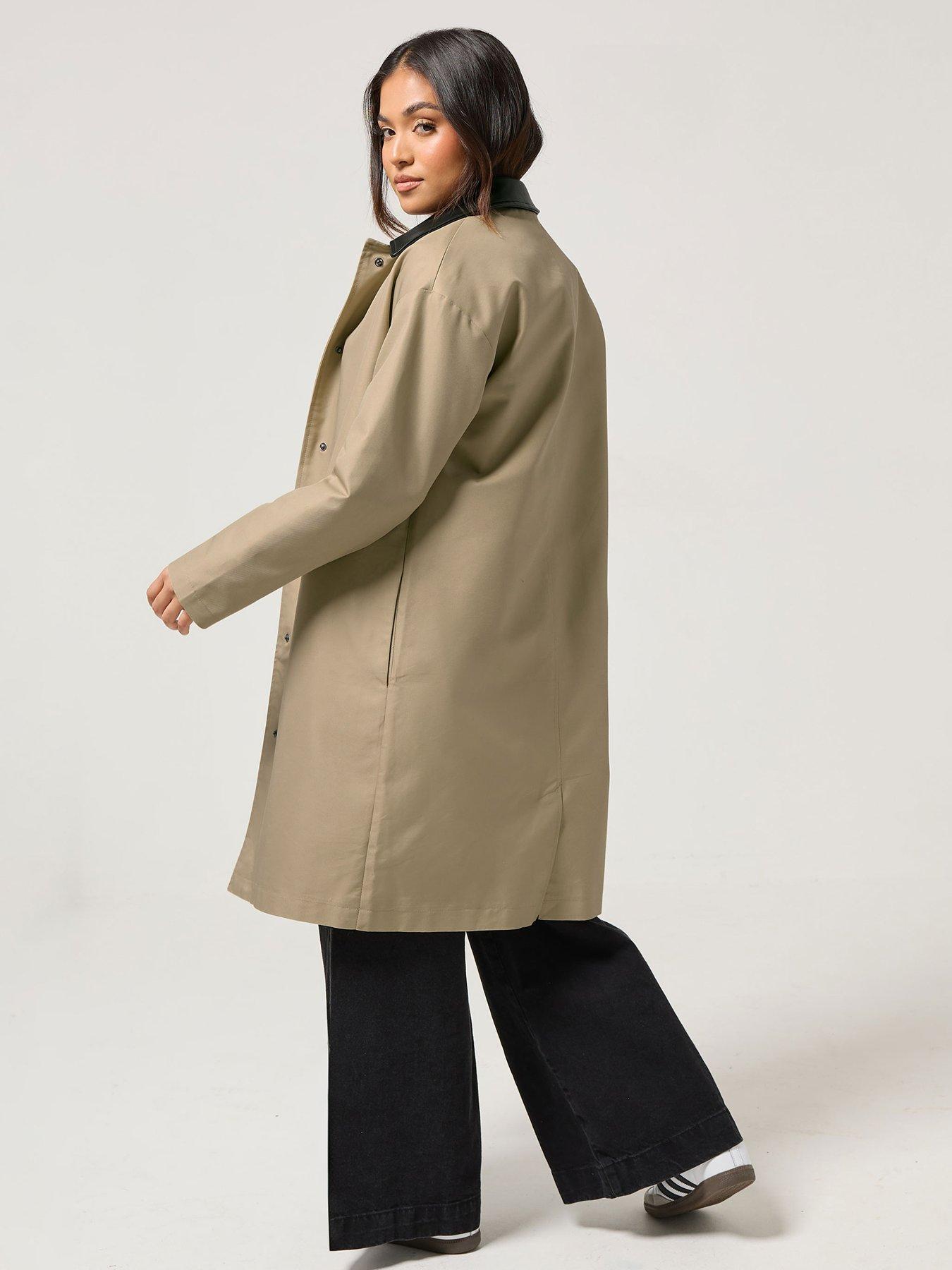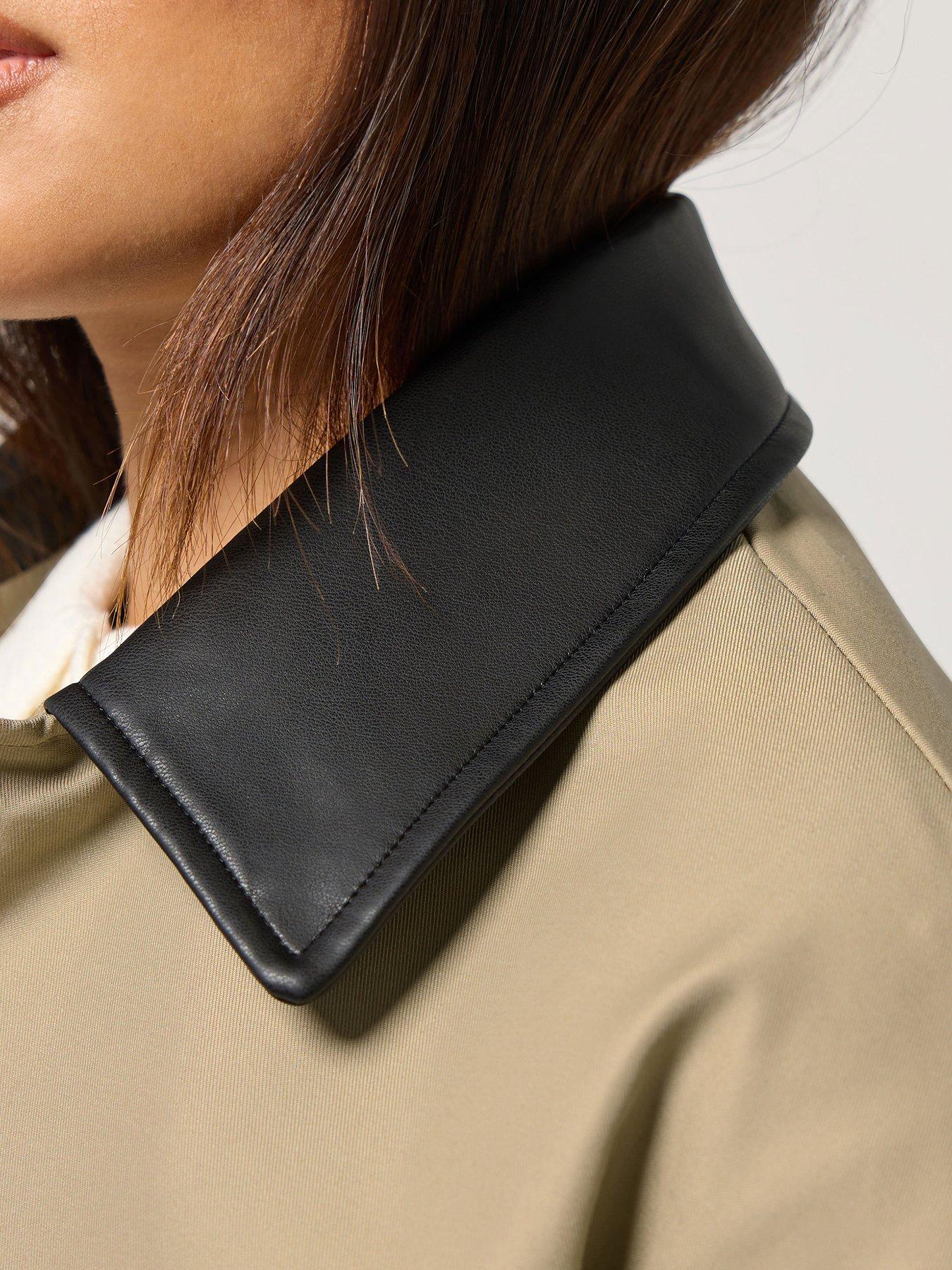 • Petite Contrast Pu Collar Coat by PixieGirl