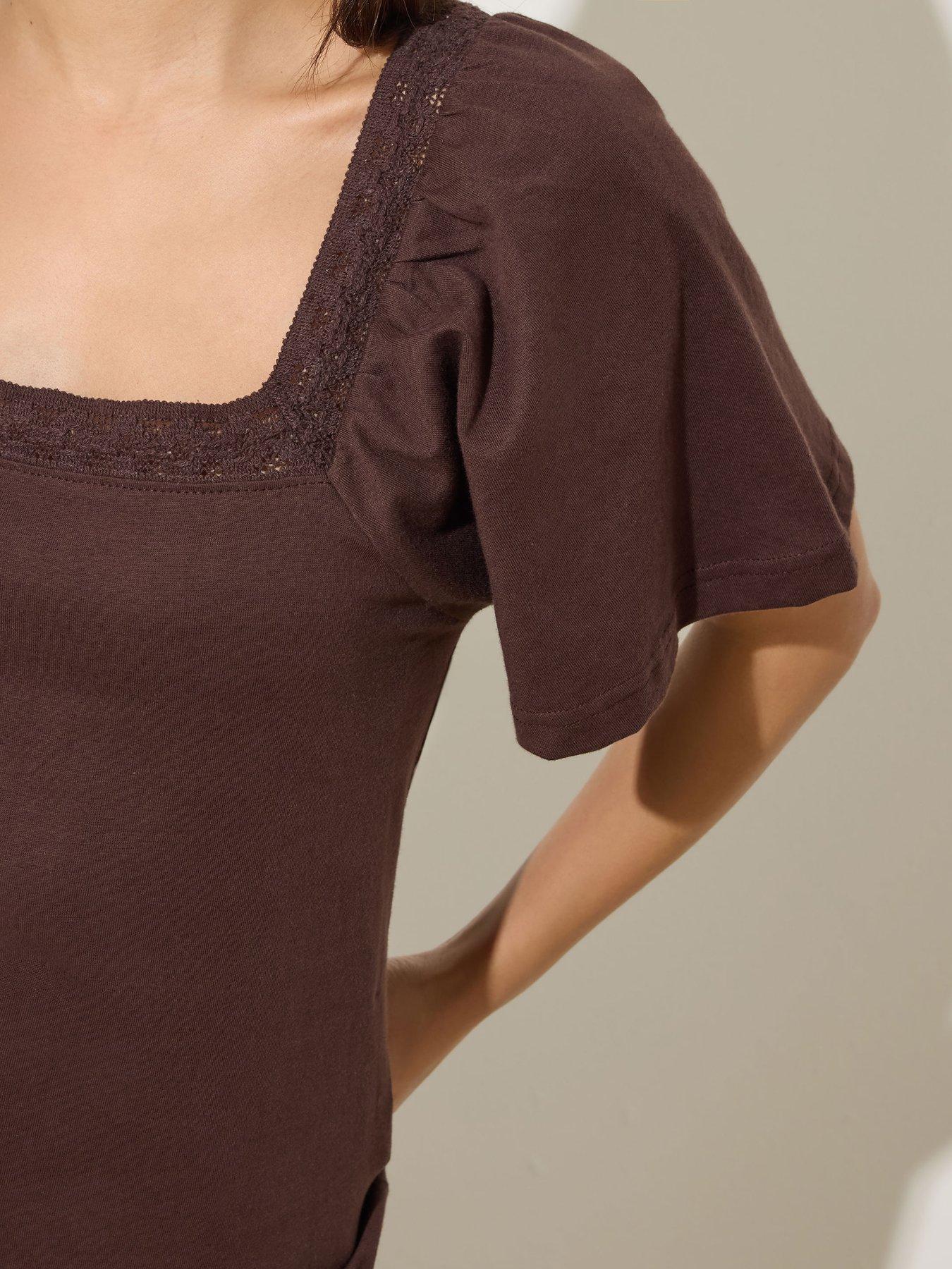 • Petite Crochet Neck Flutter Sleeve Top by PixieGirl