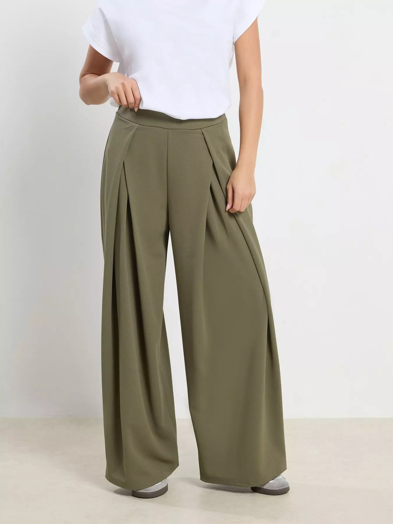 PixieGirl Petite Scuba Wrap Pleat Wide Leg Trousers