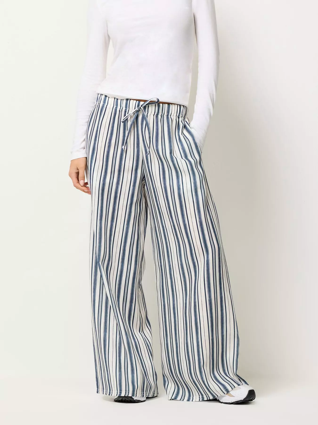 Stripe design, Wide leg fit, Drawstring tie, Made from a soft woven fabric, 100 polyester, Inside seam measures: 27, Machine washable- Material Content: 100% Polyester