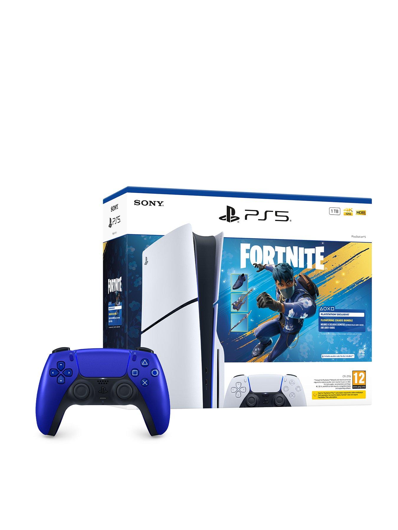 PlayStation 5 Disc Console 1TB - Fortnite Flowering Chaos Bundle & DualSense Wireless Controller - Cobalt BlueCultivate your empire while sowing the seeds of chaos with the PS5® Console - Fortnite Flowering Chaos Bundle. Jump into Fortnite with PlayStation® exclusive contents and level-up your game with PS5.The Fortnite Flowering Chaos bundle comes with 8 PlayStation exclusive cosmetics (estimated value of 5,000 V-Bucks) plus 1,000 V-Bucks: