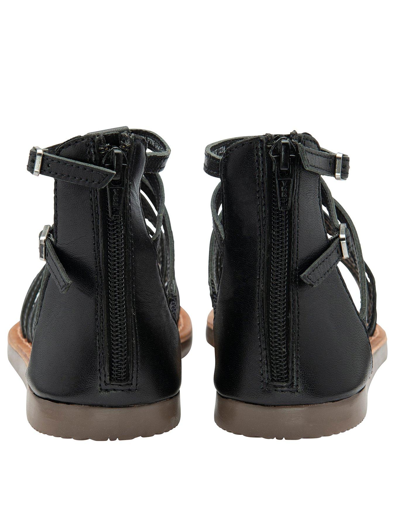 Ravel Etton Closed Ankle Gladiator Sandal - BlackEtton is a new addition to the Ravel collection and takes styling cues from a gladiator sandal. With multiple straps encasing the foot and with a double ankle strap fastening, this women's cage sandal is a sunny-weather staple. As well as encompassing a premium black leather upper, this Ravel sandal boasts a leather insock and lining. In addition, a discreet zip has been incorporated at the back of the sandal to ensure it is effortless to get on/off.