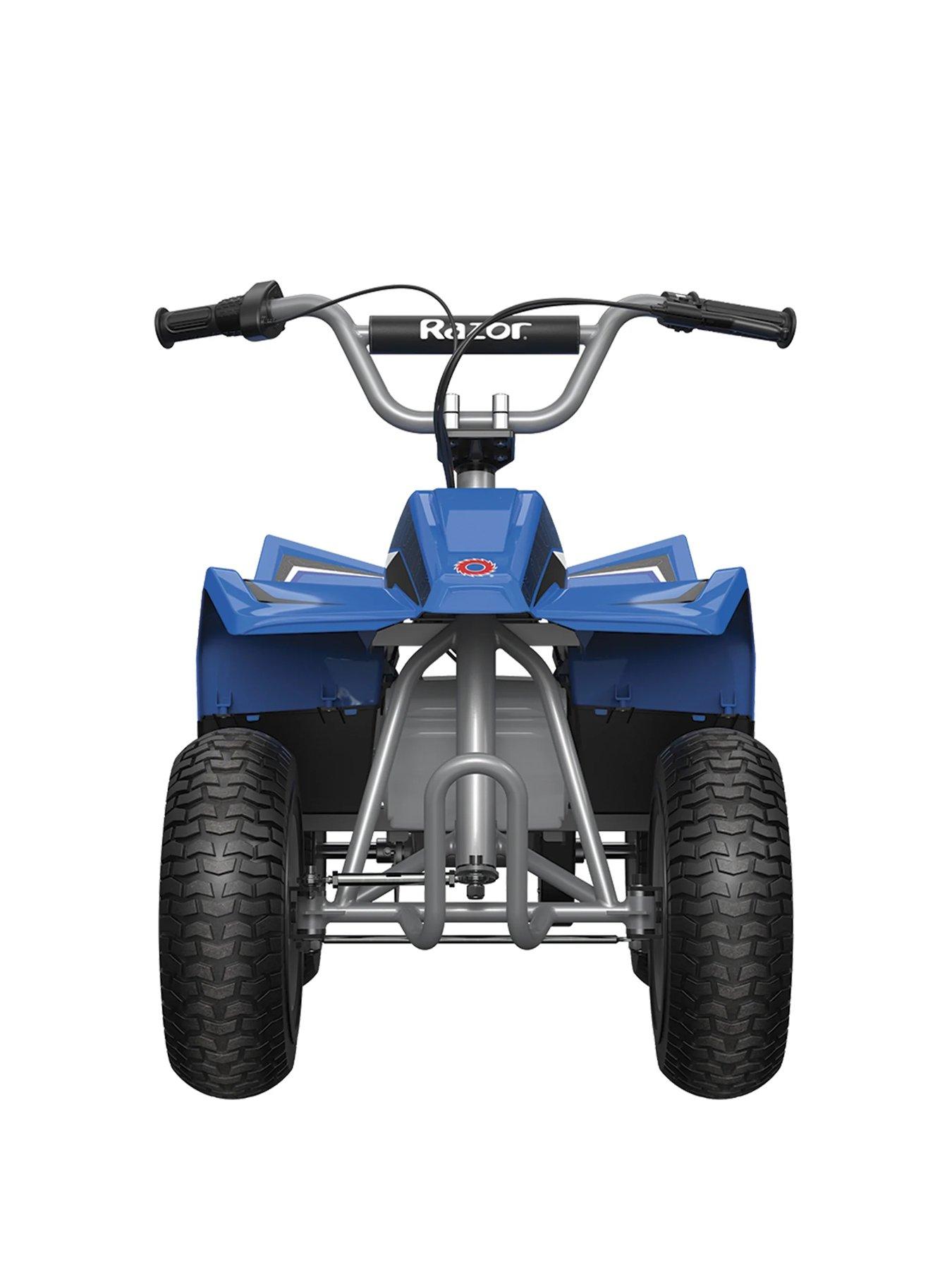 When the backyard becomes too groomed and the pavement too smooth, the Dirt Quad offers you excitement and adventure.For kids 8 years old and up, this 4-wheeler is built with a tubular steel frame and features 12" (305 mm) pneumatic tyres for a smooth and solid ride. With twist-grip throttle acceleration control, the Dirt Quad can reach speeds up to 8 mph (13 km/h).Its 24V rechargeable battery system provides up to 80 minutes of continuous use on a single charge in Low Speed Mode (5 mph). Additionally, the high/low 2-speed switch allows the selection of the right maximum speed and the forward/reverse drive switch enhances control and manoeuvrability in tight spaces. Comes with 2 x 12-volt rechargeable batteries and charger. Dimensions: 101.6 cm x 57.15 cm x 78.74 cm. Weight: 40kg. Max rider weight: 54 kg. Battery charge time 12 hours. Suits ages 8 years +