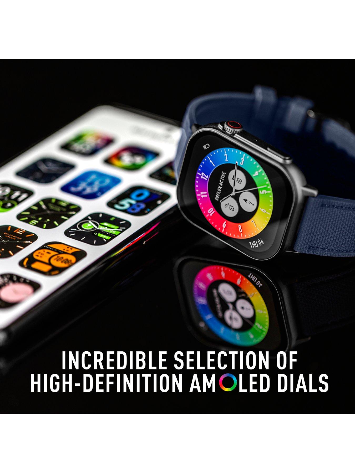 Experience Reflex Active in high definition, with Radley's Series 29 Amoled Smartwatch.Enjoy the amazing collection of exclusive dials this smart watch has to offer on a generous 2.04'' display with exceptional clarity and colour reproduction.HEALTH AND FITNESS STATS AT A GLANCE The Series 29 offers all the lifestyle and wellness features you need, including helpful health benefits like step count, heart rate monitor, blood oxygen, cycle tracking, calories, sleep analysis and so much more at your fingertips. Stay connected and on top of your day with call, message and social notifications, music control and GPS connection. ALWAYS READY Innovative Always-On display means that you no longer need to touch your watch or lift your arm to activate the display. Radley's Dual-Time feature shows the time home and away, to ensure you always keep on track while traveling. CALLS AT THE FLICK OF A WRIST Enjoy the freedom of making and receiving calls directly from your wrist, keeping you in touch anytime, anywhere. Stay seamlessly connected while on the move with convenient message and social notifications. MAKE IT YOUR OWN Personalise your watch with an incredible choice of exclusive Reflex Active dials, including animated displays! Or for a truly unique display, use a photo from your phone gallery. The black 4cm case is complimented by an adjustable 25cm blue soft silicone strap with premium herringbone texture delivering durable comfort. READY TO DIVE INTO ANYTHING Our IP68 water resistance rating makes this smart watch the perfect for surface swimming, or any other of the multiple activities this smart watch will help you track! ...And all this with exceptional battery life, empowering you to stay connected for longer between charges!