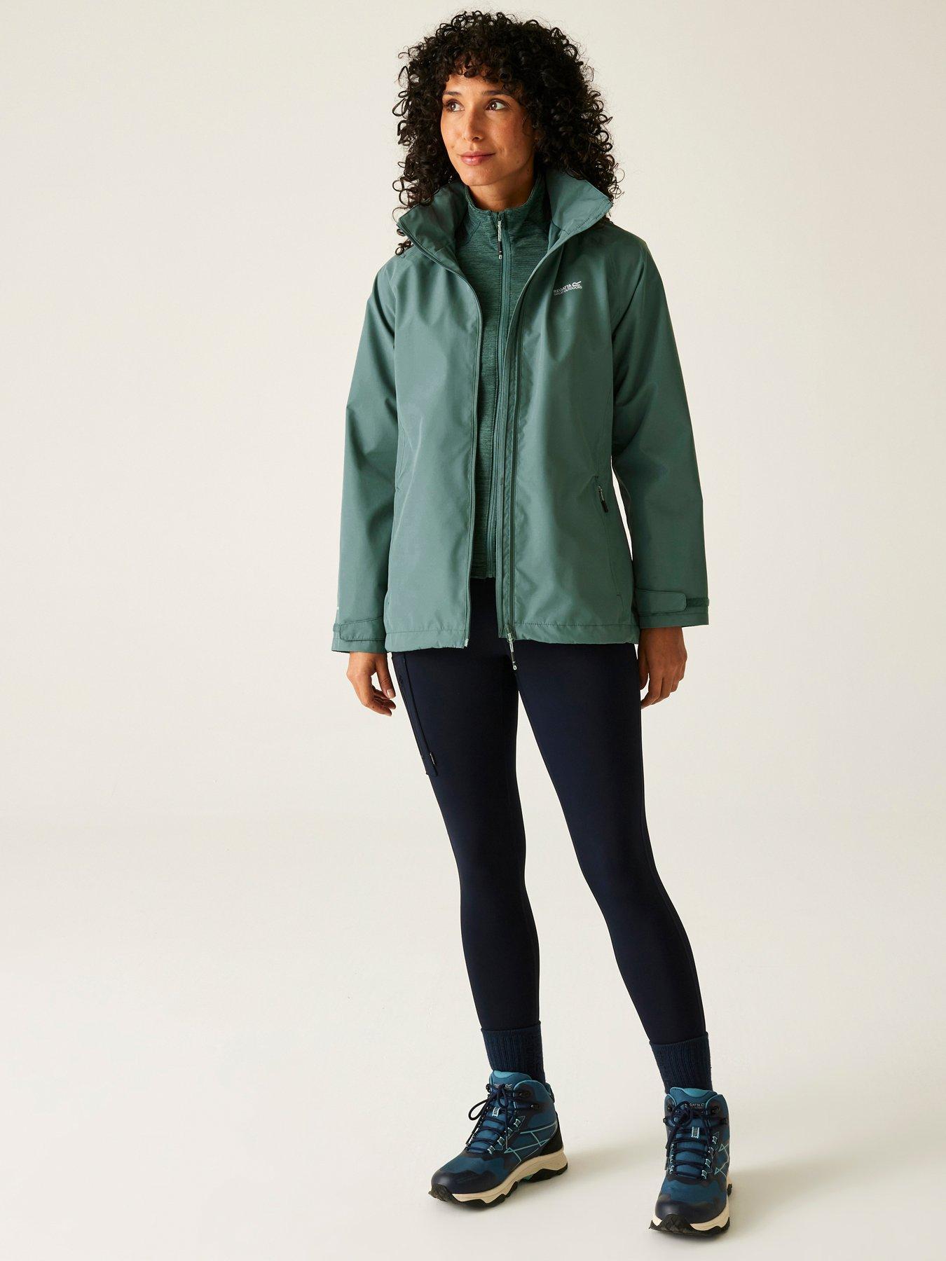 Regatta Womens Dayshall Waterproof Shell Jacket - GreenThe Daysha II women's hiking jacket from Regatta is made for rainy day exploring. The Isotex 10000 polyester fabric is both waterproof and highly breathable, and features taped seams, keeping you comfy on the go. The waterproof hiking jacket comes with a concealed hood with adjusters, plus adjustable cuffs and hem to keep the elements at bay. It's finished with multiple pockets for your hiking essentials.