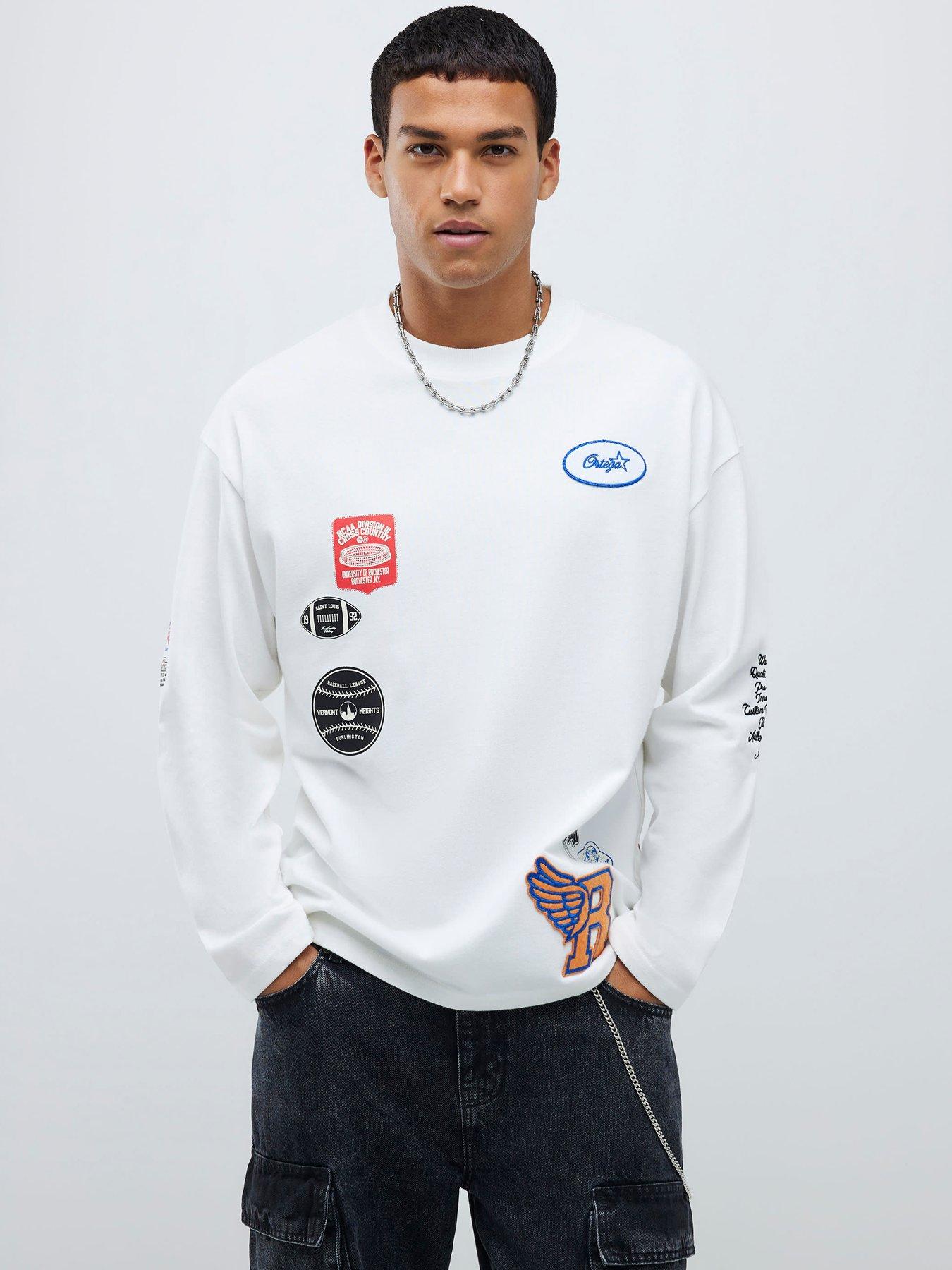 River Island Boxy Americana Badge Long Sleeve T-ShirtSize & Fit