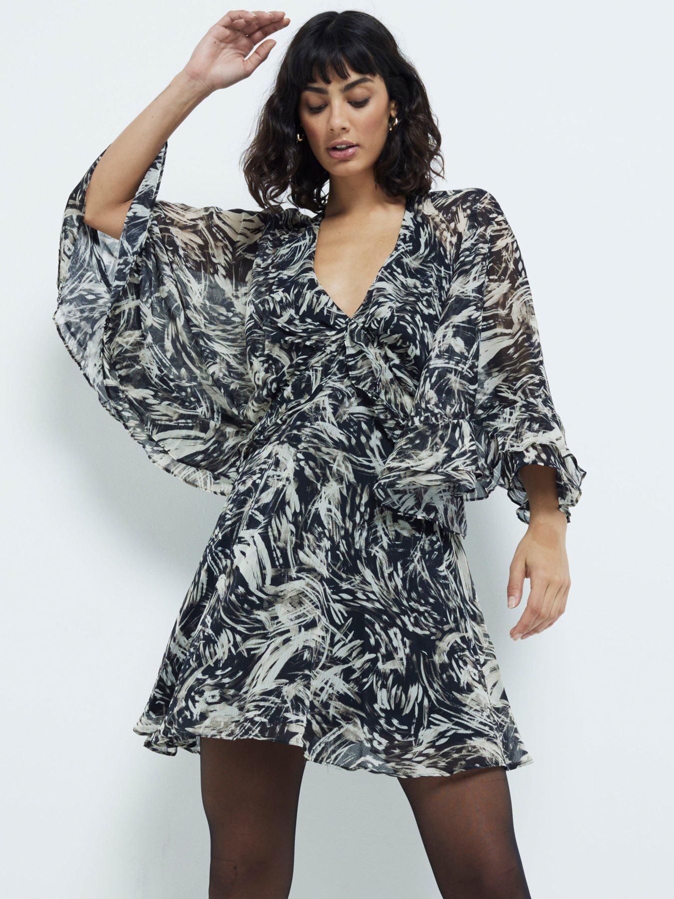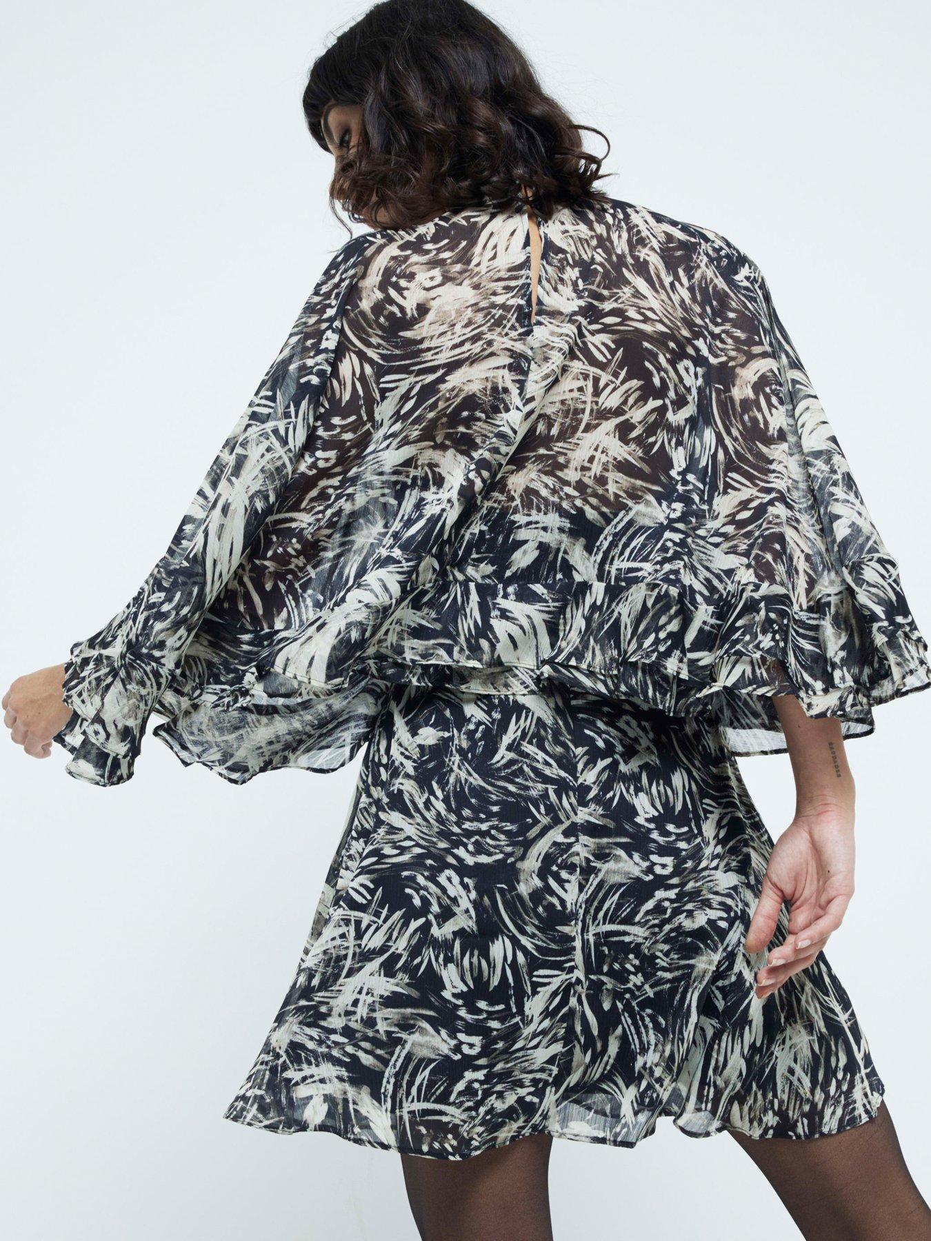 River Island Chiffon Printed Cape Mini DressSize & Fit