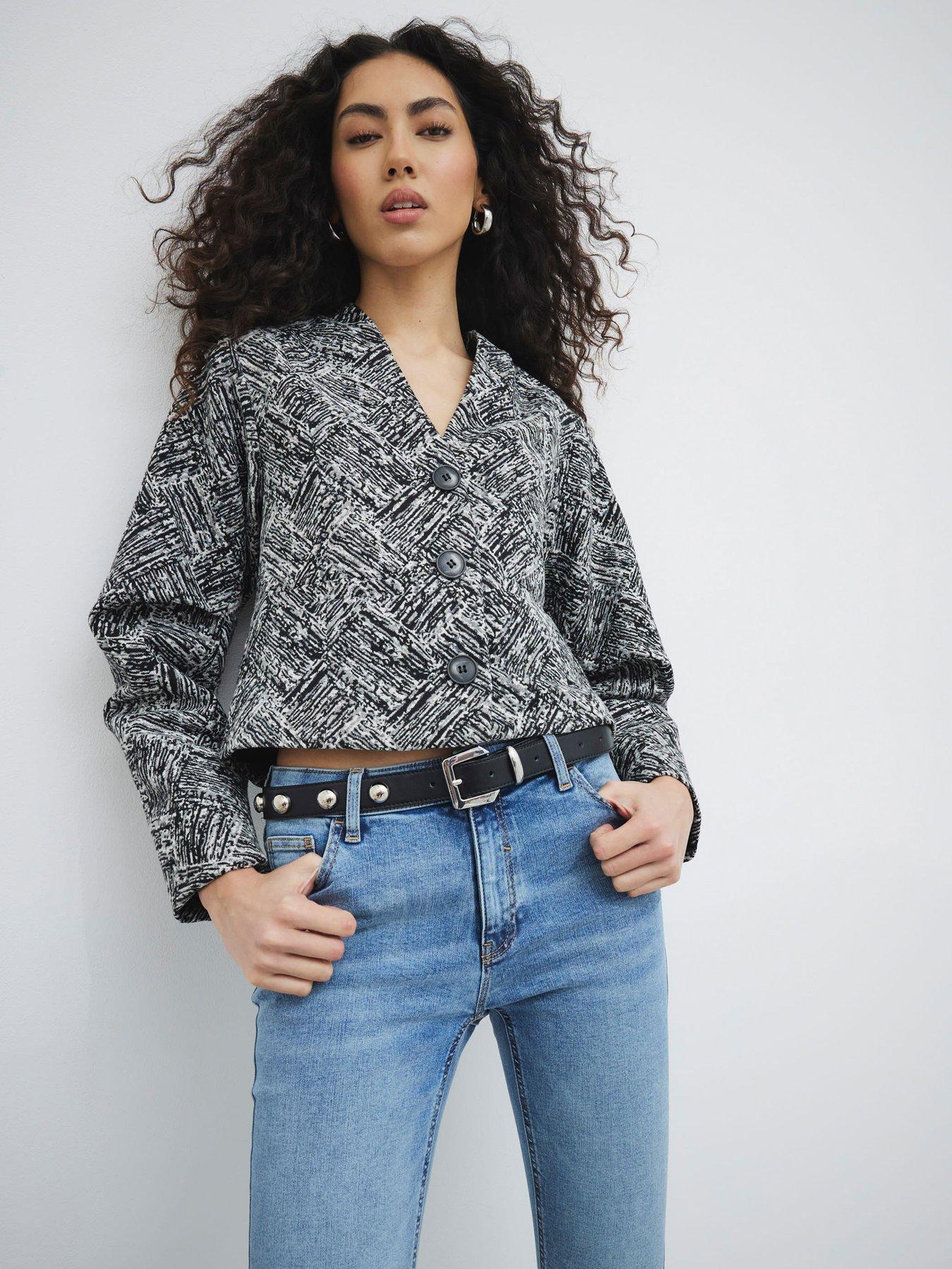 River Island Abstract Print Collarless Trophy JacketSize & Fit
