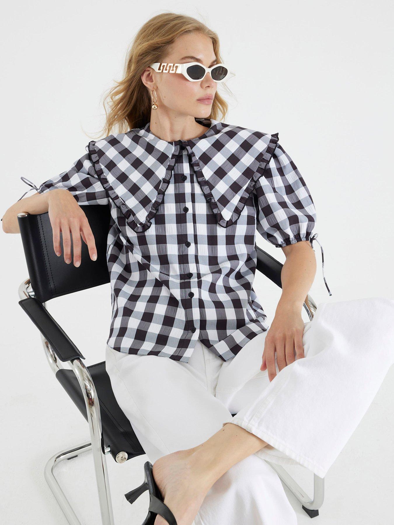 River Island Gingham Short Sleeve Collar ShirtSize & Fit