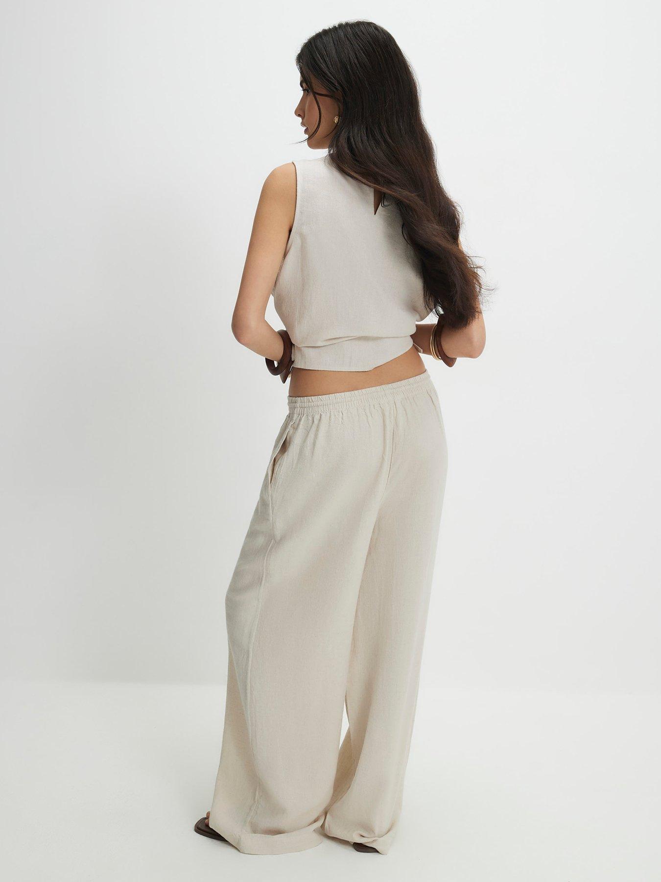 • Linen Blend Wide Leg Trousers by River Island