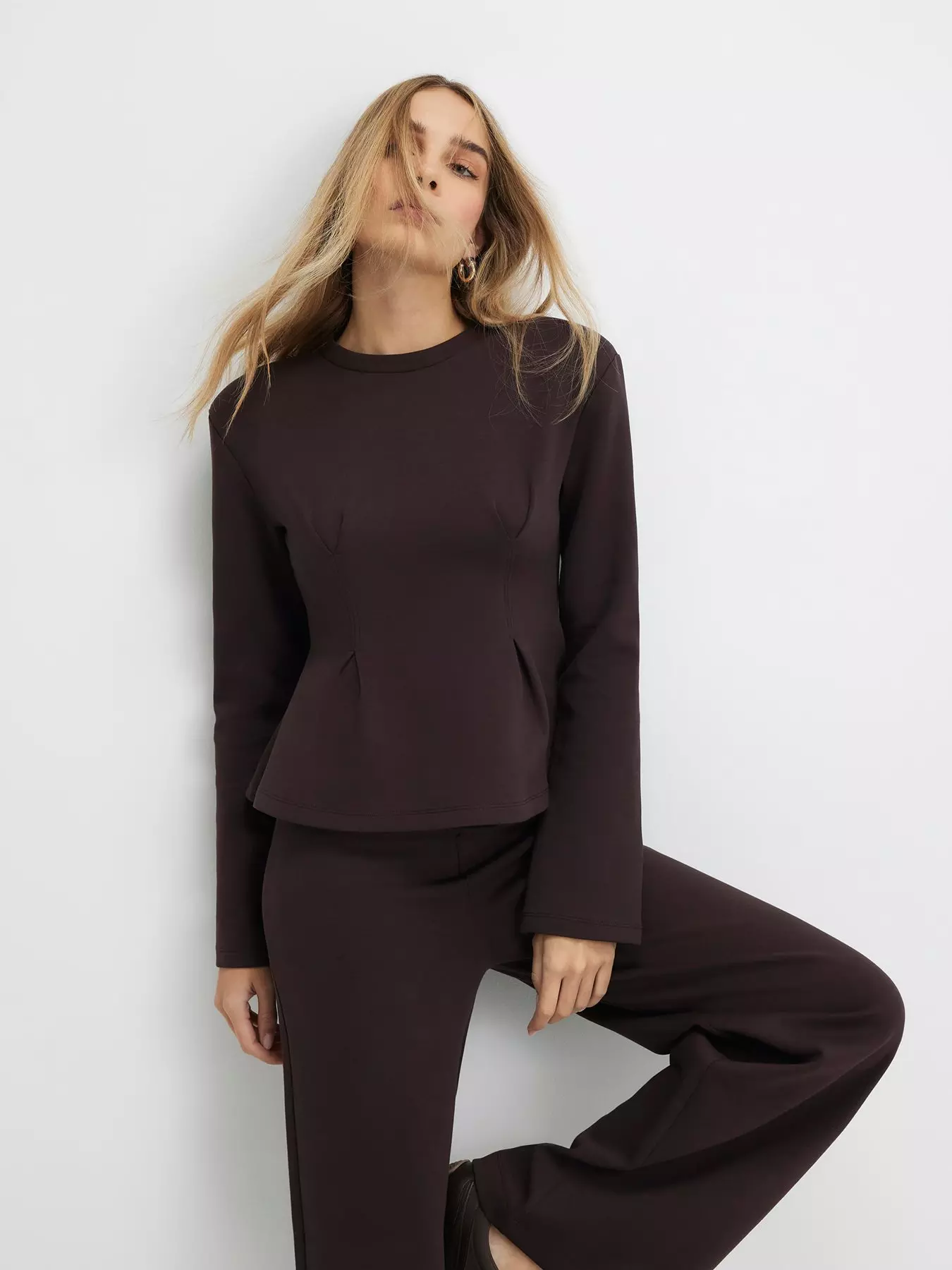 River IslandLong Sleeve Corset Detail Top - Brown