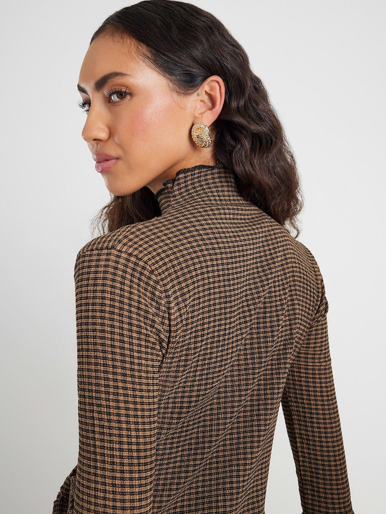 River Island Long Sleeve Twist Side Check TopSize & Fit