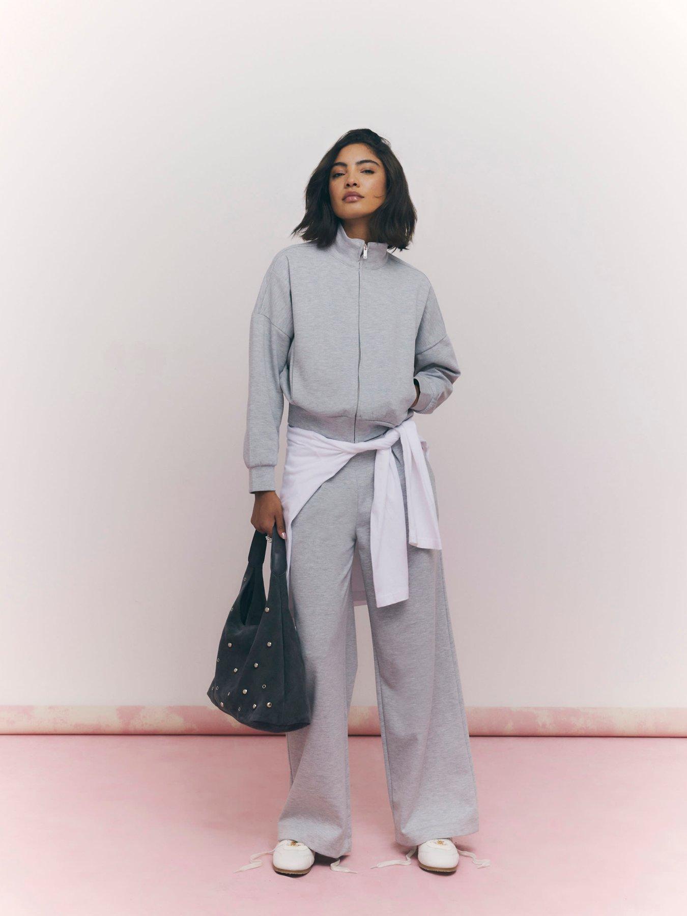 River Island Long Sleeve Zip Up Interlock Bomber SweatshirtSize & Fit