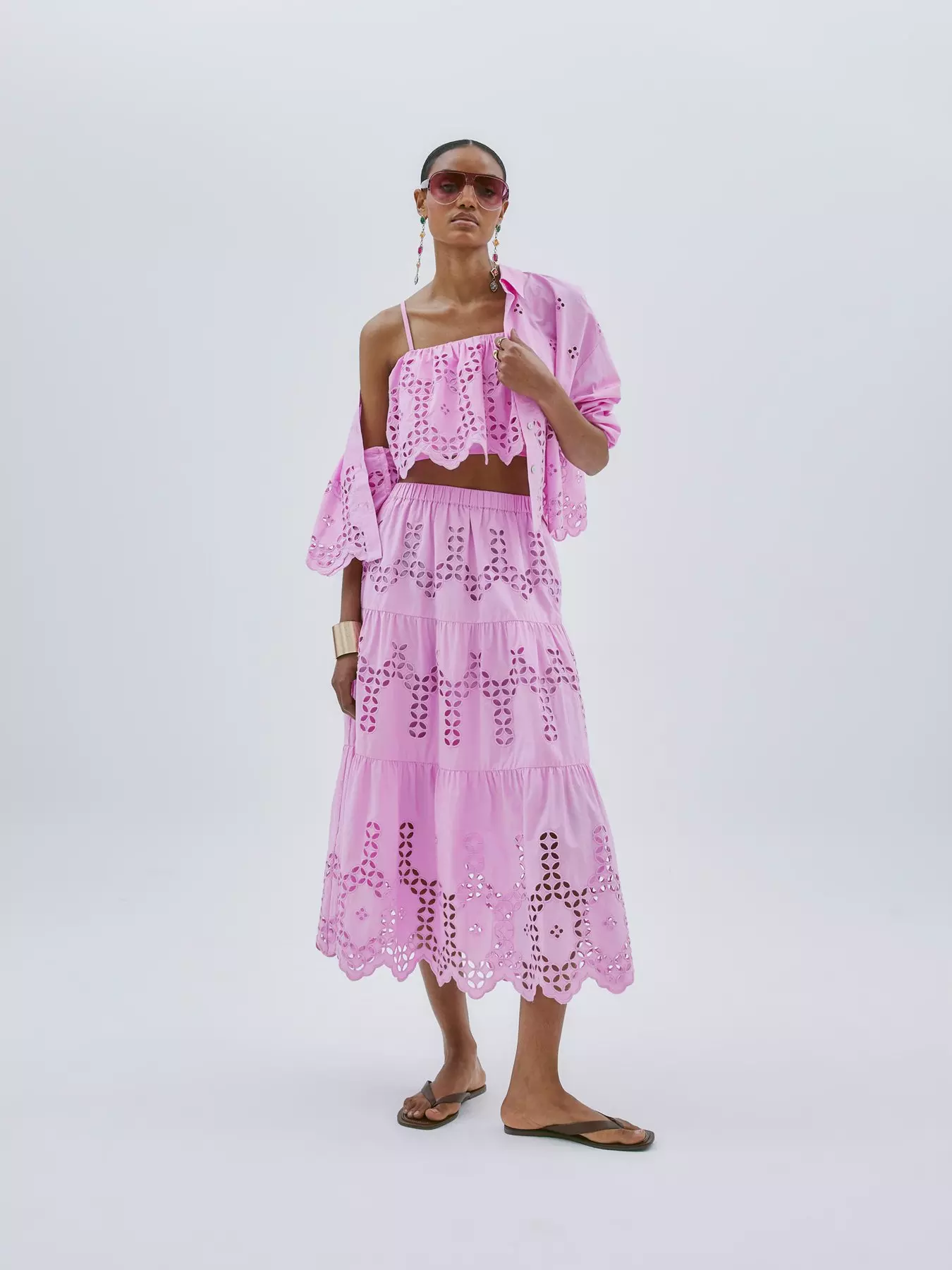 River IslandMaxi Broderie Cutwork Skirt - Pink