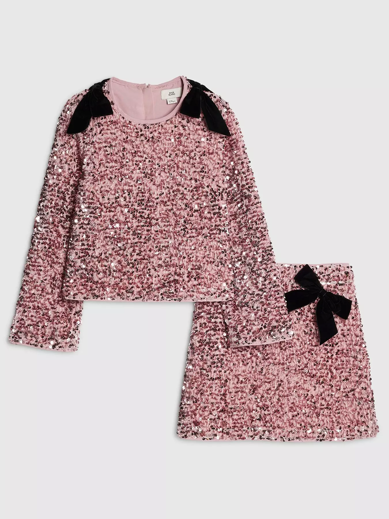 - Older Girls Sequin Bow Long Sleeved Skirt Set by River Island
