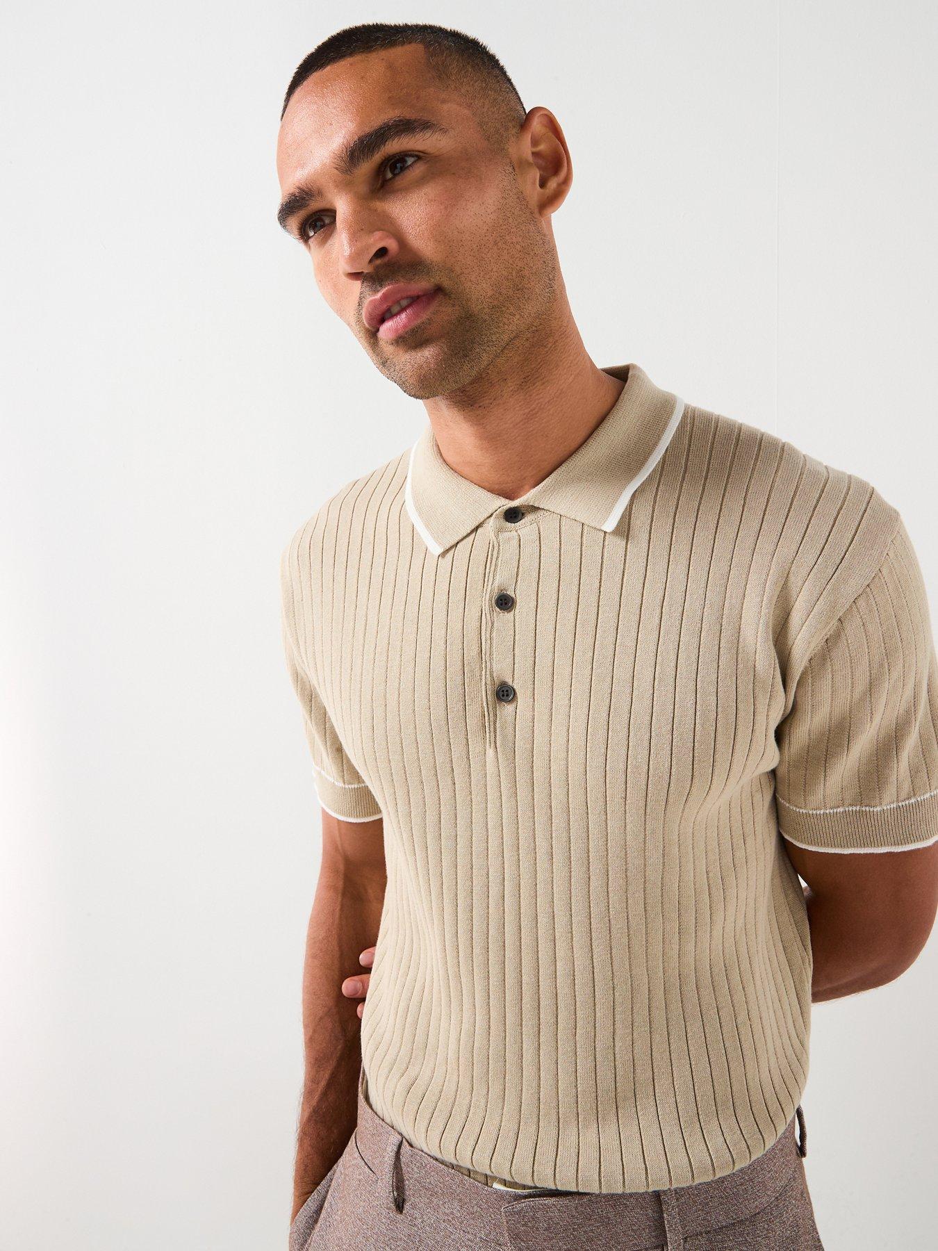 River Island Short Sleeve Rib Knitted Polo ShirtSize & Fit