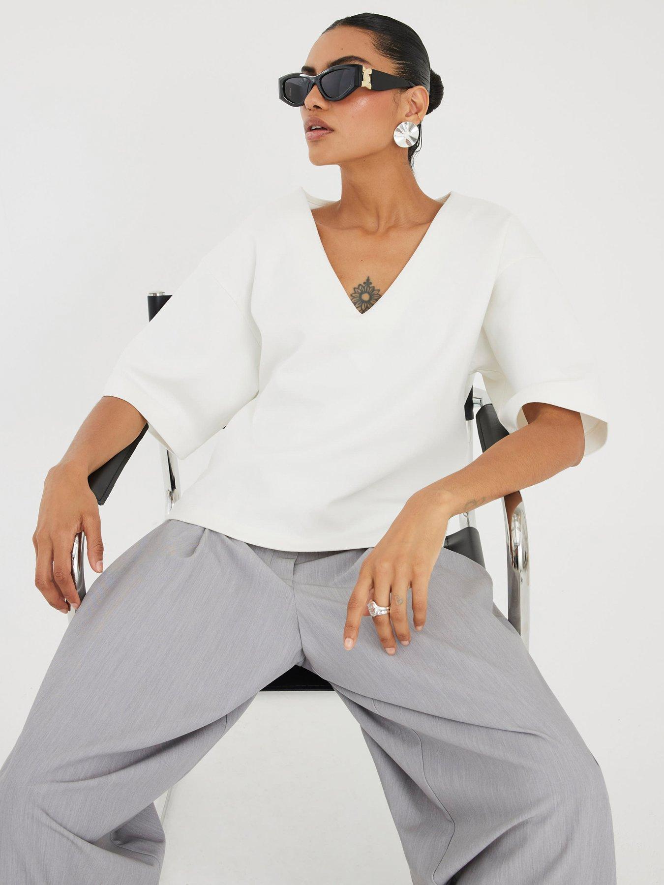River Island Short Sleeve V-Neck Interlock T-ShirtSize & Fit