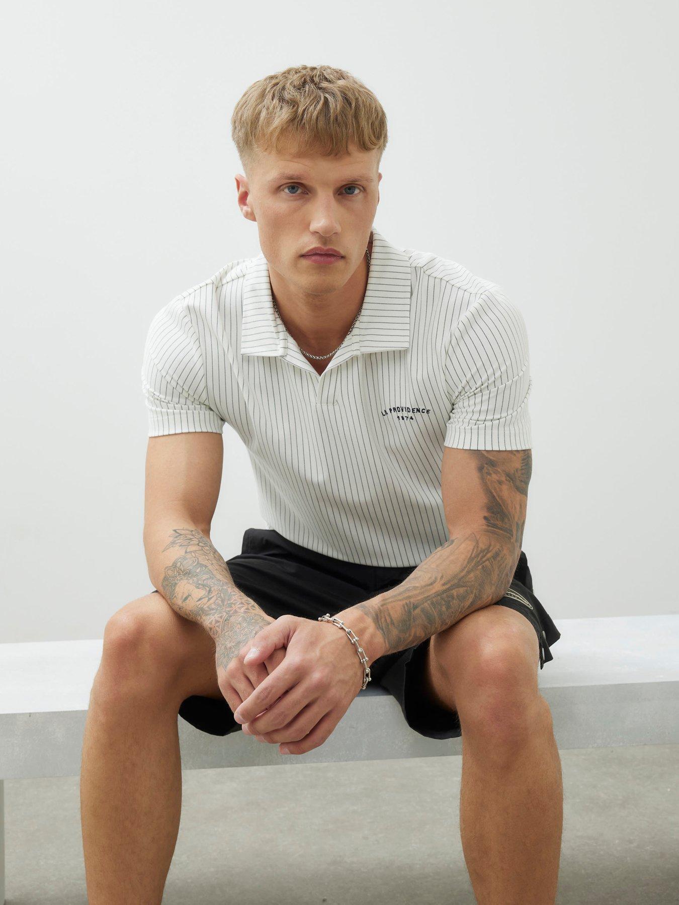River Island Stripe Open Neck Polo ShirtSize & Fit