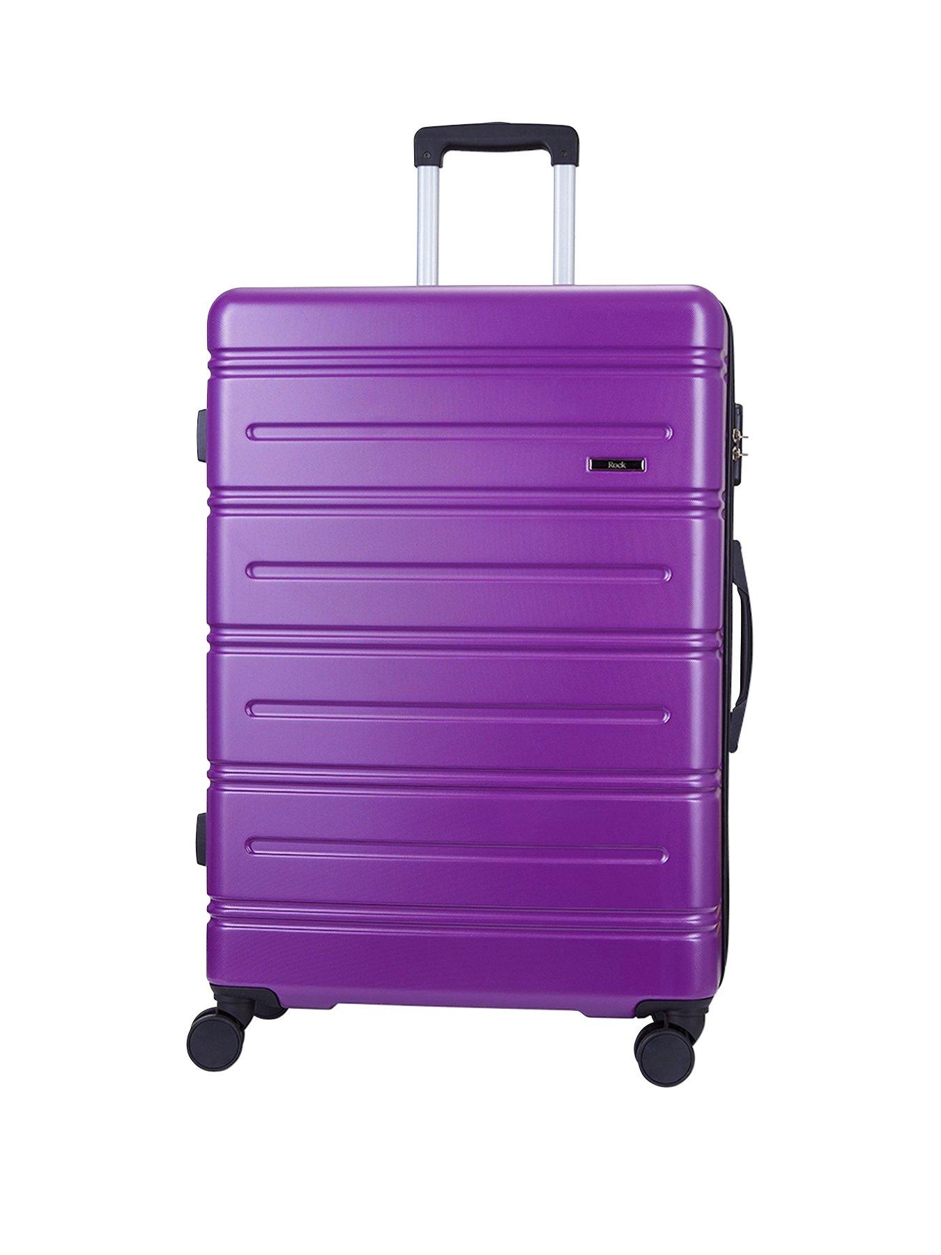 Rock Luggage Lisbon 3 Pc Set PurpleStand out from the crowd with our Lisbon design. This is a 3 piece luggage set comprising 3 sizes: cabin, medium and large, to cover all your travel needs. The 3 cases can be nested inside one another to save space when not in use.Large: 77x52x30cm | Capacity 98L | Weight 4.4kg Medium: 66x45x26cm | Capacity 60L | Weight 3.3kg Cabin: 55x40x20cm | Capacity 34L | Weight 2.5kg Designed to withstand everyday travel, Lisbon is made from an impact-resistant ABS material giving assured protection for all your personal items. Give yourself further peace of mind, the Lisbon collection comes with a combination lock to secure your belongings. The 8-wheel spinner system glides effortlessly when on your travels and the adjustable-height telescopic trolley system gives you great control in all modes of use. The grab handles are designed for your comfort so retrieving your case off the luggage carousel has never been easier.