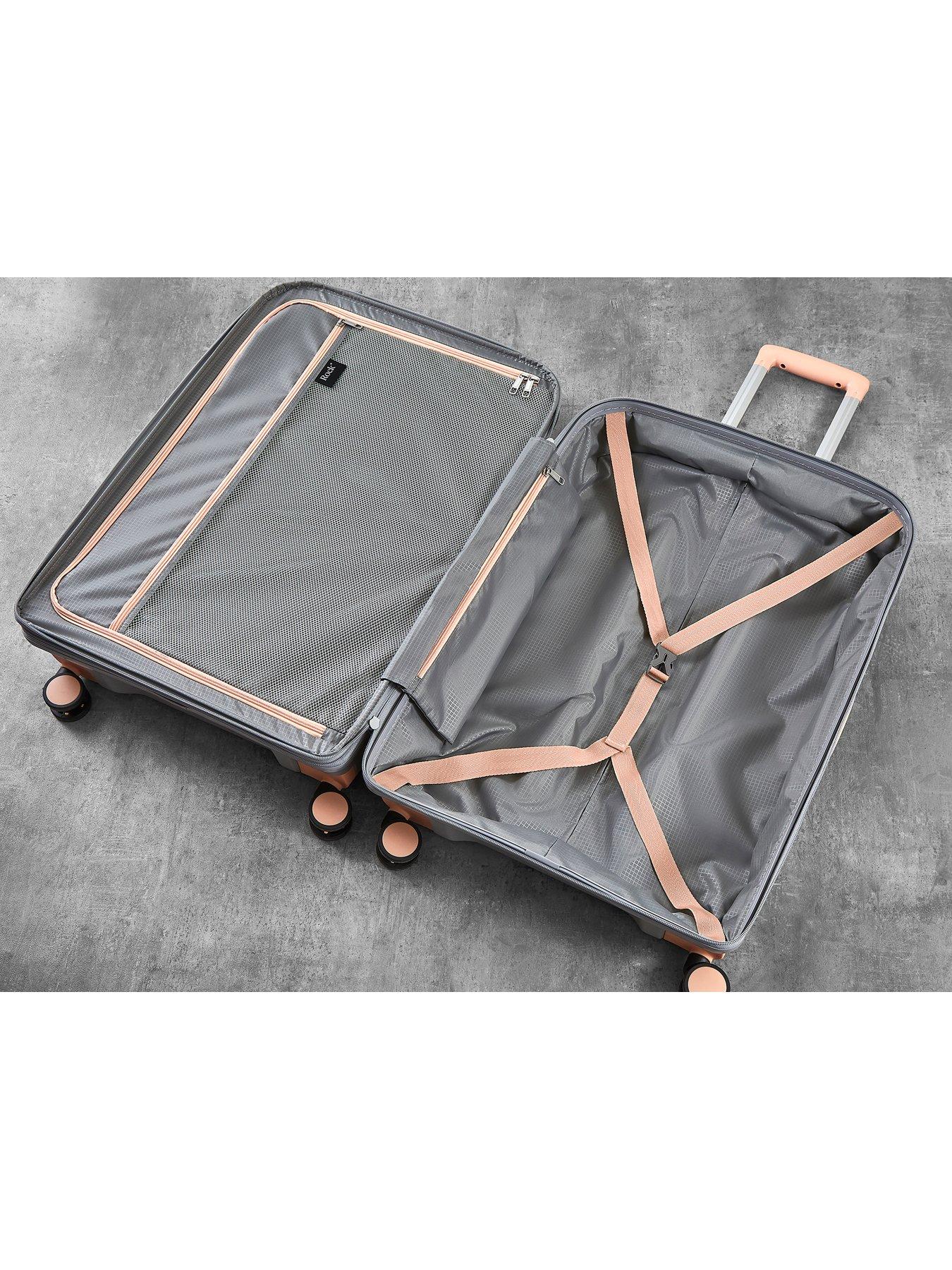 Rock Luggage Tulum 8 Wheel Hardshell Large Suitcase - GreyRock Tulum is made from ultra-strong polypropylene. It's super tough and impact resistant and packed with practical features. Available in a great choice of colours. Expander zips can be opened to increase the volume of the case, ideal for last-minute extras or holiday shopping.Eight smooth rolling wheels and a telescopic handle help them glide effortlessly along platforms and concourses. For your complete peace of mind, Tulum cases are fitted with an integrated Travel Sentry-approved TSA combination lock. Travel Sentry allows your suitcase to be legally opened by aviation security agencies without damaging your case. Design excellence continues inside, where you'll find a luxurious soft-touch lining, useful zipped pocket, and mesh divider section and elasticated straps to help prevent contents shifting. Leave your packing worries behind with this expandable hardshell with larger sizing allowing extra capacity for all those last minute additions, without having to purchase a larger size or another case.