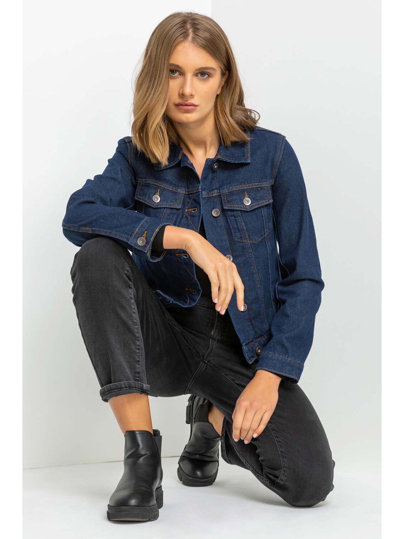 Roman Classic Cotton Denim Jacket - IndigoThis classic washed out denim jacket is a wardrobe essential. This cropped piece comes complete with stylish silver-toned buttons, a classic collar and two chest patch pockets. Perfect to throw on over your summer outfits when it gets a little chilly.