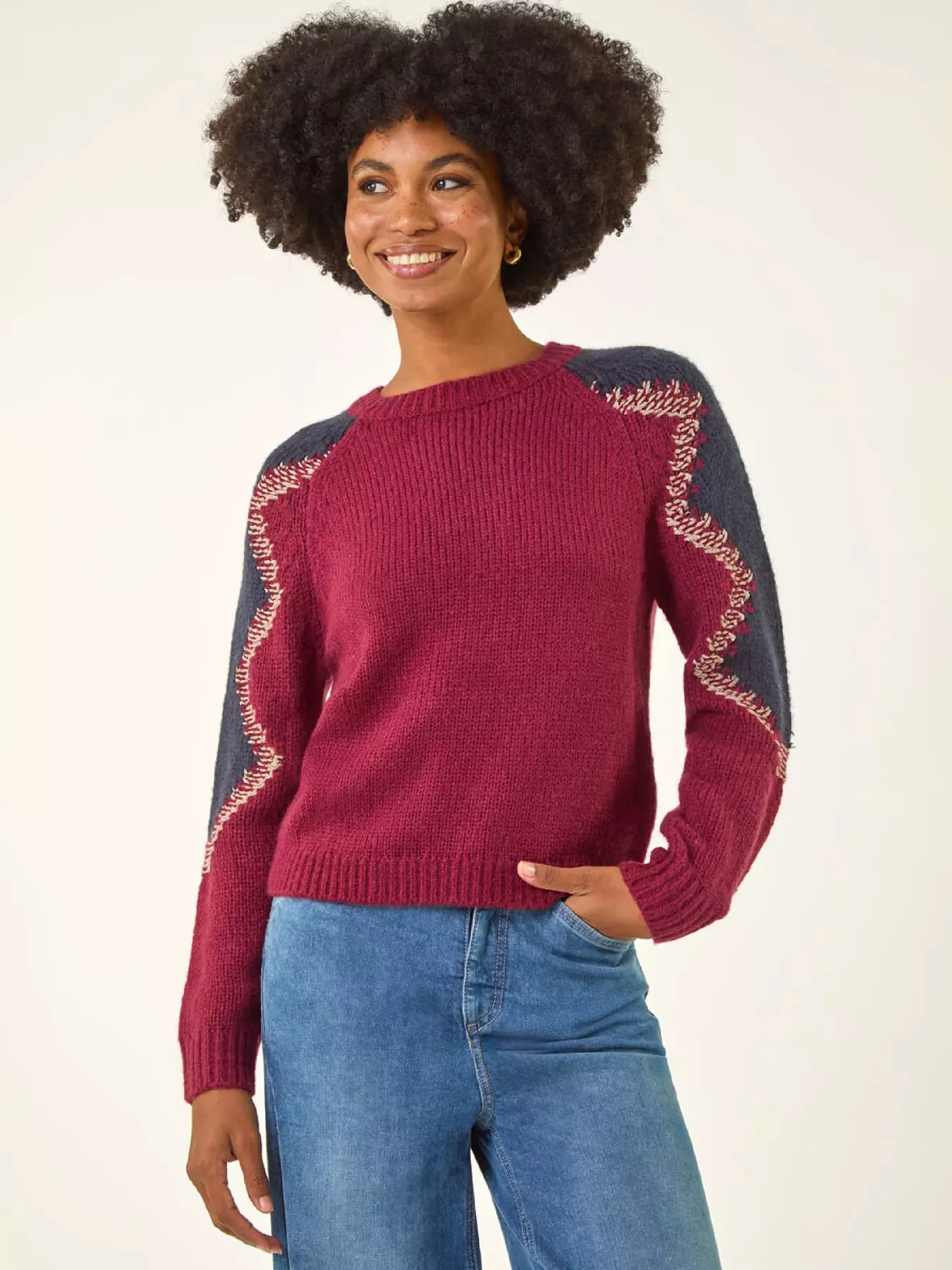 E.A.N: 5 0 6 3 5 6 6 4 7 5 4 7 2Roman Colour Block Soft Knit Jumper - Burgundy