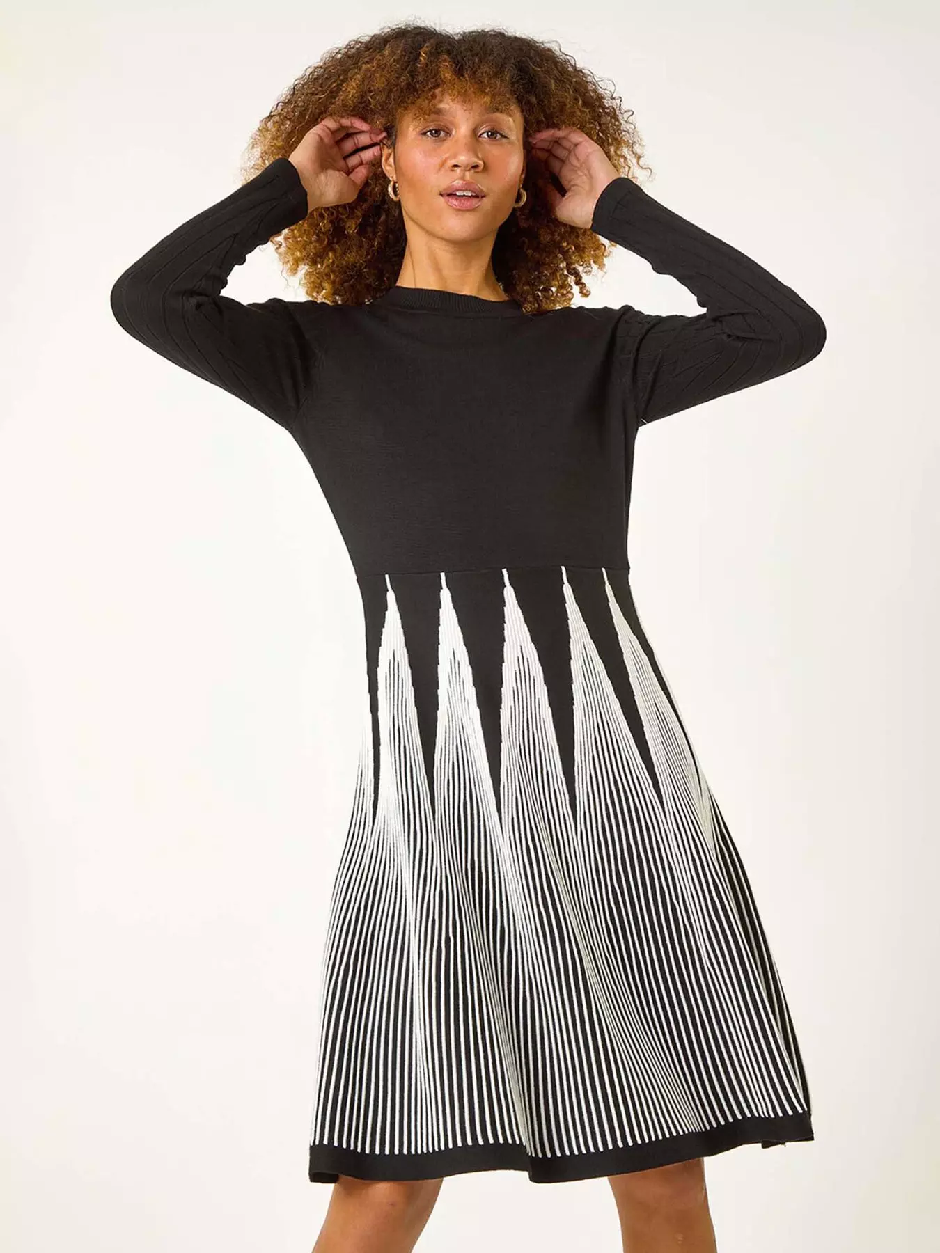 E.A.N: 5 0 6 3 0 2 6 9 0 3 9 1 0Roman Contrast Pattern Knitted Dress - Black