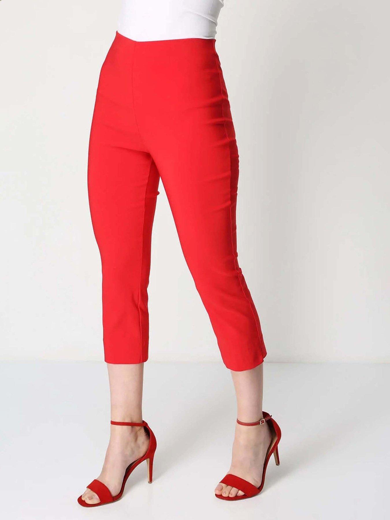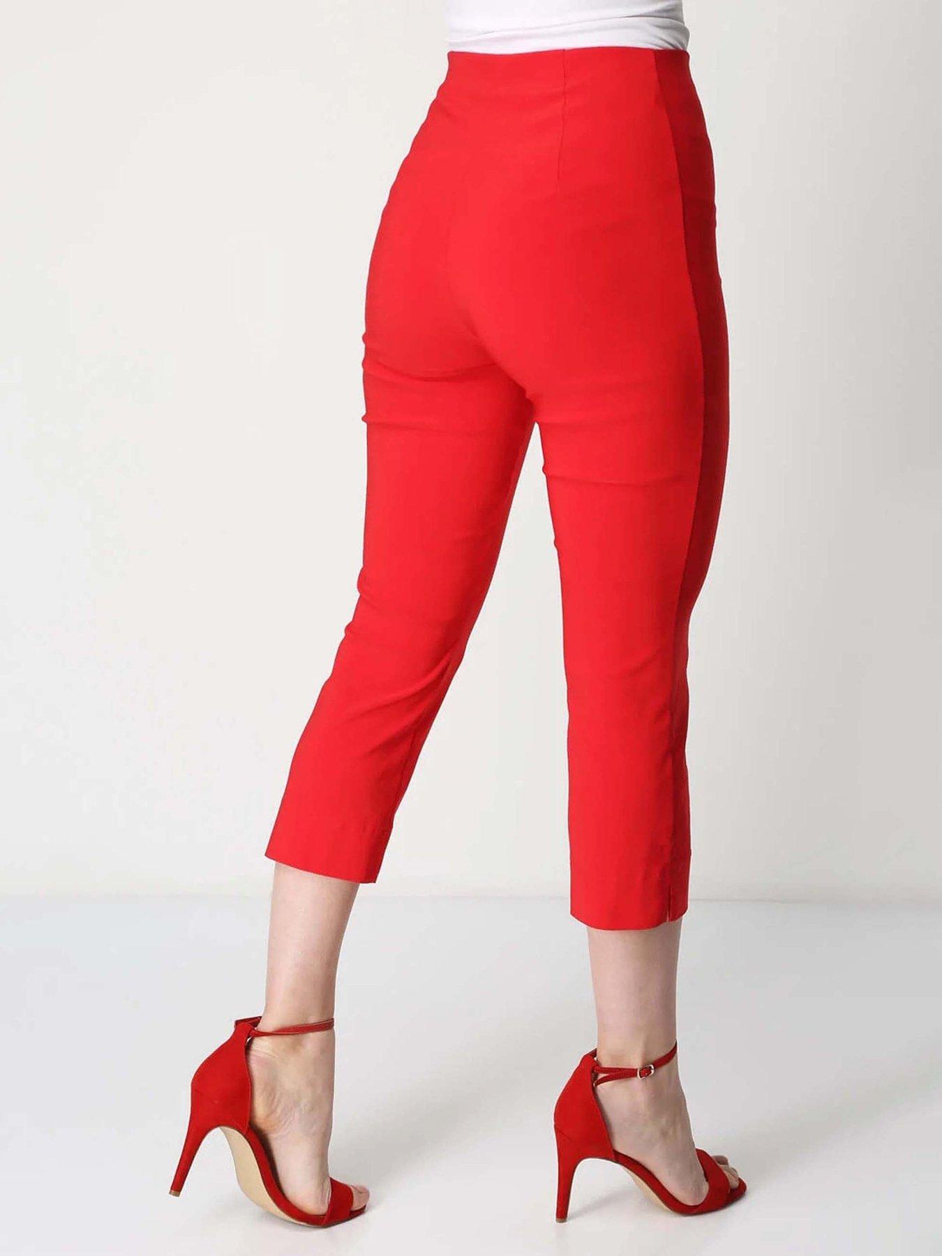 Roman Cropped Stretch Trouser - RedA basic essential for every wardrobe these comfy cropped stretch trousers are perfect to wear with tops tunics and dresses. Made with just the right amount of stretch for a comfortable and flattering fit these trousers are available in a variety of colours and are the perfect way to complete your look.