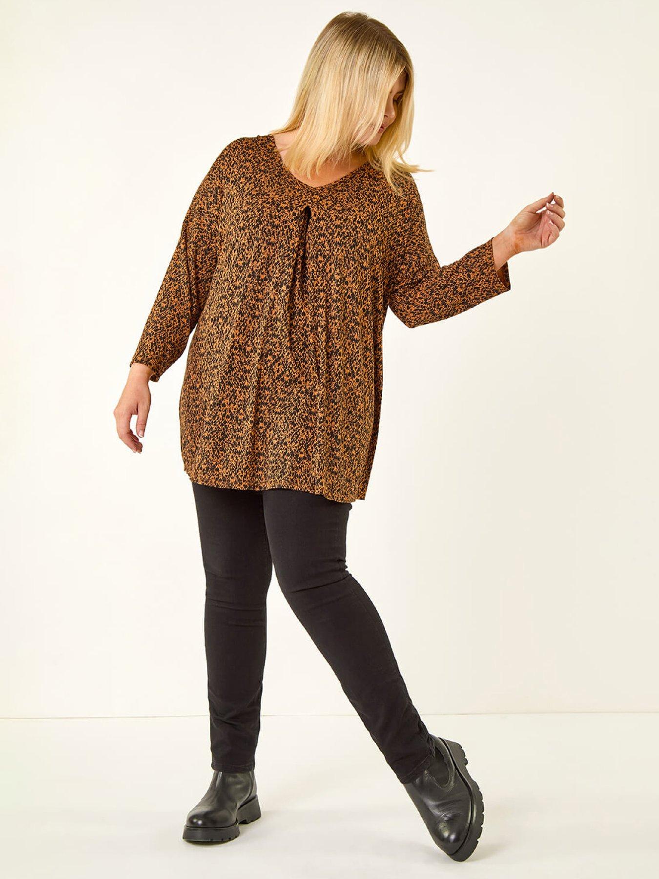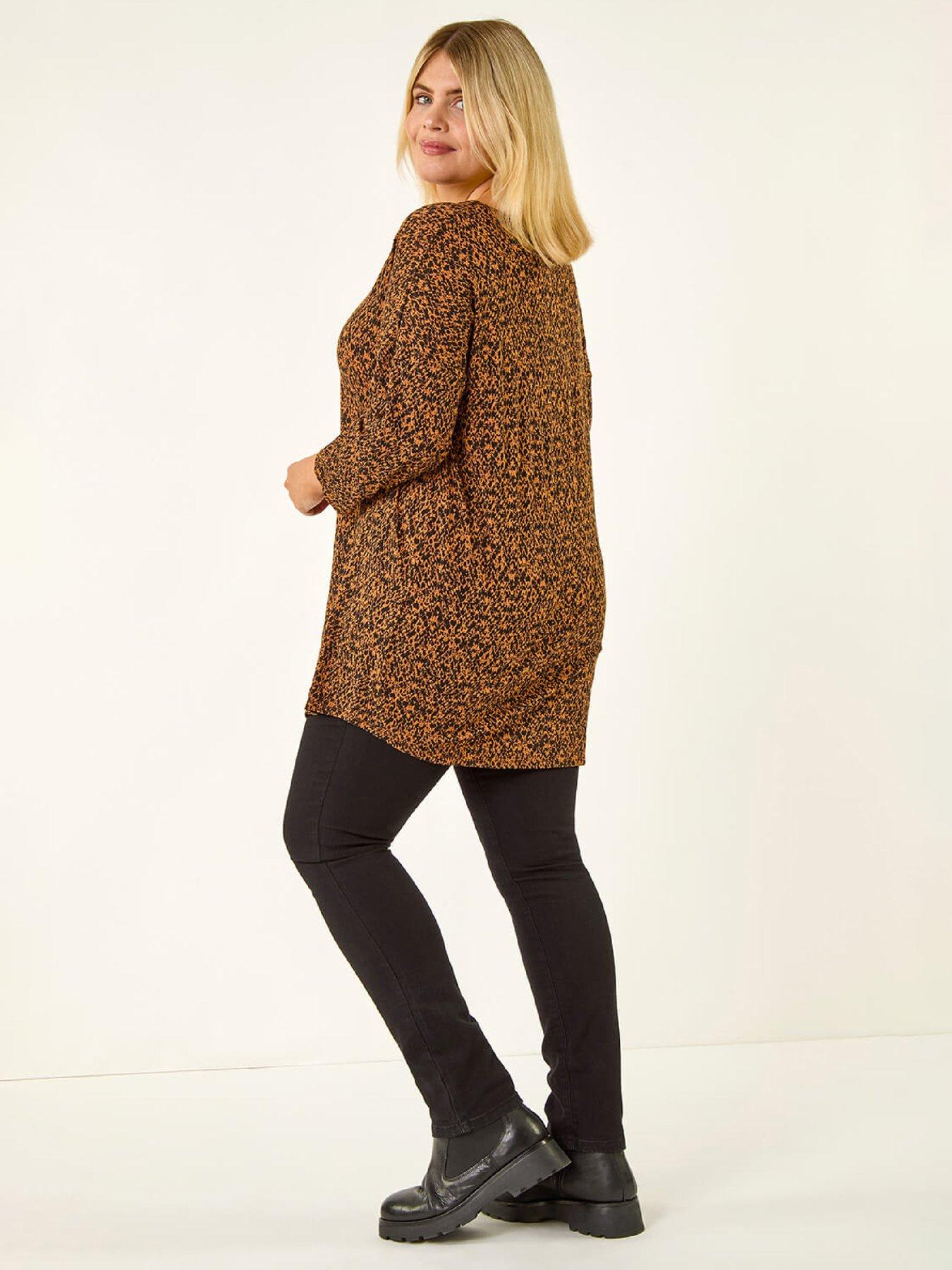 Roman Curve Spot Print V-neck Tunic TopStep out in style this season with our chic spot print tunic top. Crafted from comfortable stretch jersey fabric this V-neck tunic features elegant 3/4 sleeves and a flattering pleat front detail. The tunic length and all-over spot print give it a contemporary twist. Pair with jeggings and ankle boots for a fashionable and cosy Autumn/Winter look that's perfect for any occasion.