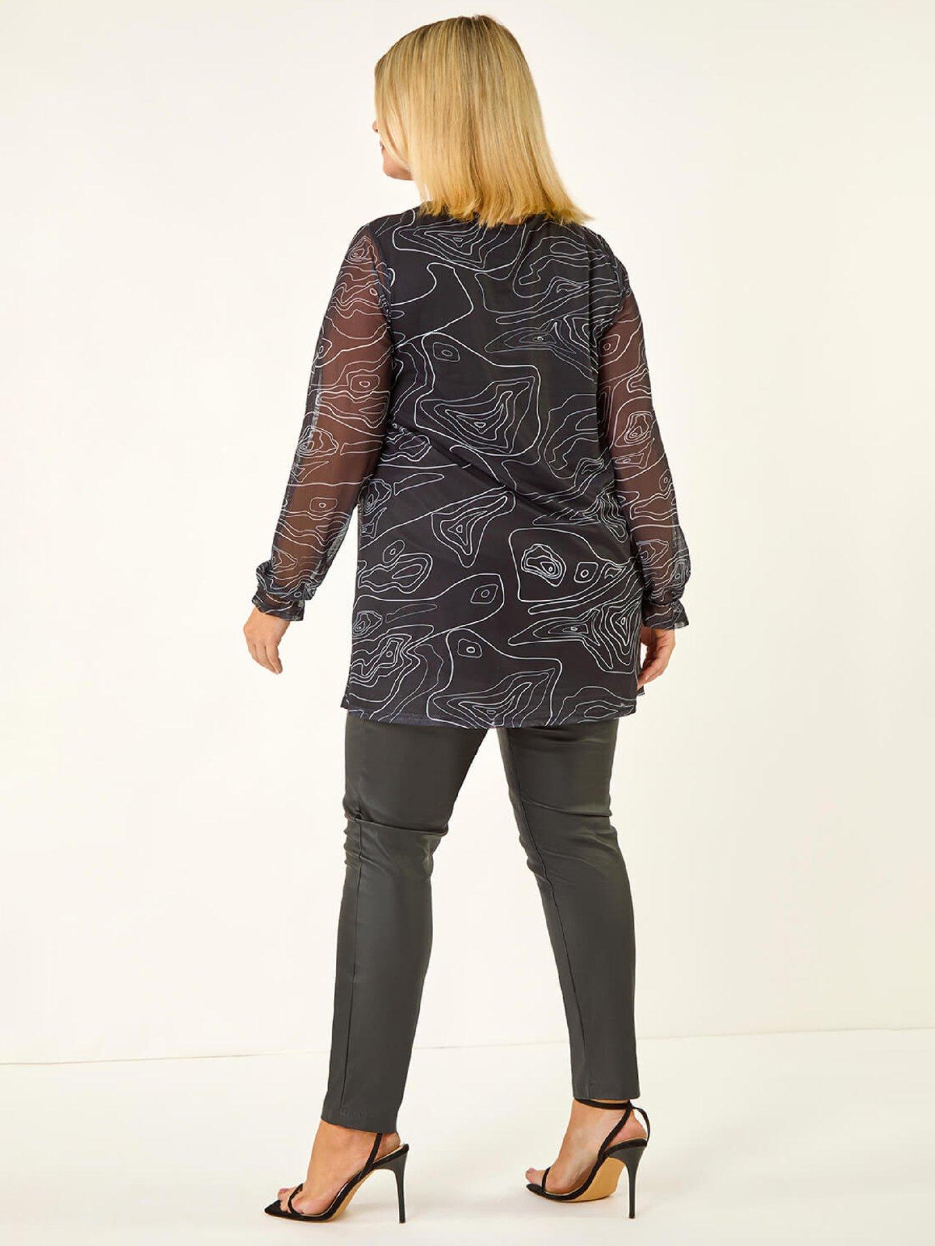 Roman Curve Swirl Print Stretch TopAdd a touch of elegance to your Autumn/Winter wardrobe with this wirl print top. Designed in a vibrant all over swirl pattern this round neck top is crafted from comfortable stretchy jersey fabric ensuring a flattering fit. The elasticated cuff finishes at the hip adding a stylish touch. Pair with your favourite jeans and ankle boots for a chic and effortless everyday look!